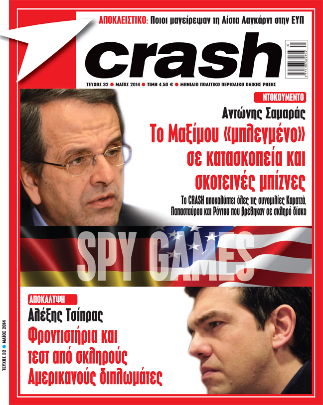 Ακόμη, στο Crash θα διαβάσετε για τις θερμές επαφές του Αλέξη Τσίπρα με Σπέκχαρντ, Μίλερ, Ανθόλις. Επίσης, μαθαίνουμε ποιοί μαγείρεψαν τη λίστα Λαγκάρντ μέσα στην ΕΥΠ. Ονόματα και διευθύνσεις. Πώς δόθηκε εντολή να παρακολουθούνται οι Αμερικανοί ανταποκριτές για να μαθαίνει η ΕΥΠ τί έλεγαν για τον Παπανδρέου.