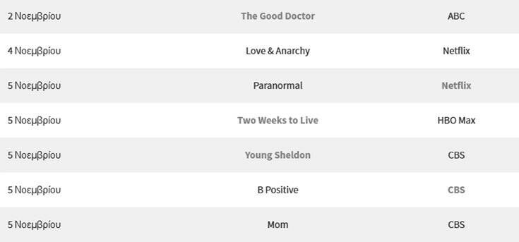 Ο Νοέμβριος έρχεται να διαδεχθεί έναν πολύ πλούσιο τηλεοπτικό μήνα και ενώ σίγουρα δεν είναι τόσο μεγαλειώδης όσο ο Οκτώβριος, έχει μερικές δυνατές πρεμιέρες από αγαπημένες σειρές που επιστρέφουν αλλά και νέες σειρές.