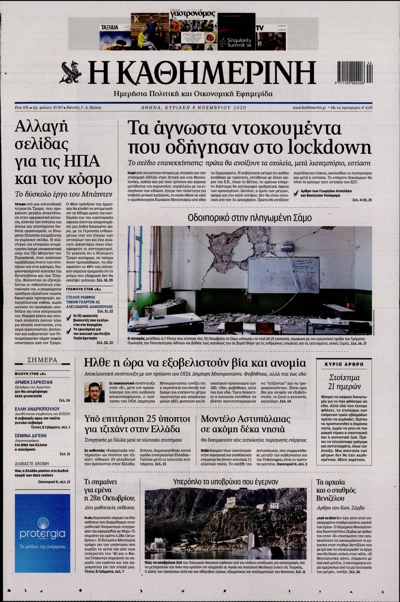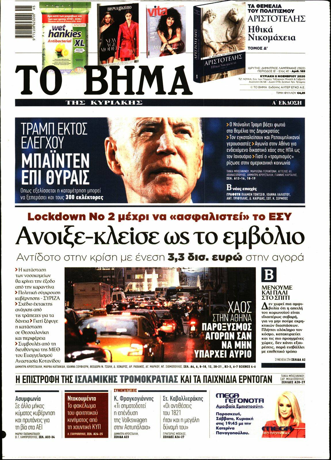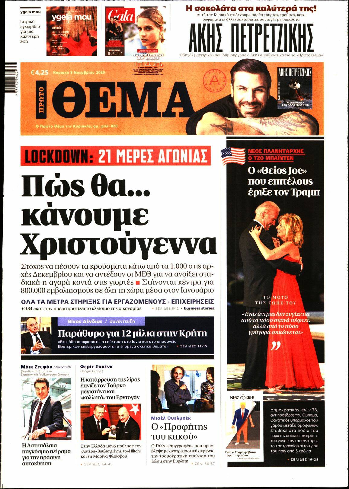 H νέα πραγματικότητα στη χώρα λόγω του νέου γενικού lockdown και οι προεδρικές εκλογές στις ΗΠΑ ξεχωρίζουν μεταξύ άλλων στα πρωτοσέλιδα των κυριακάτικων εφημερίδων.