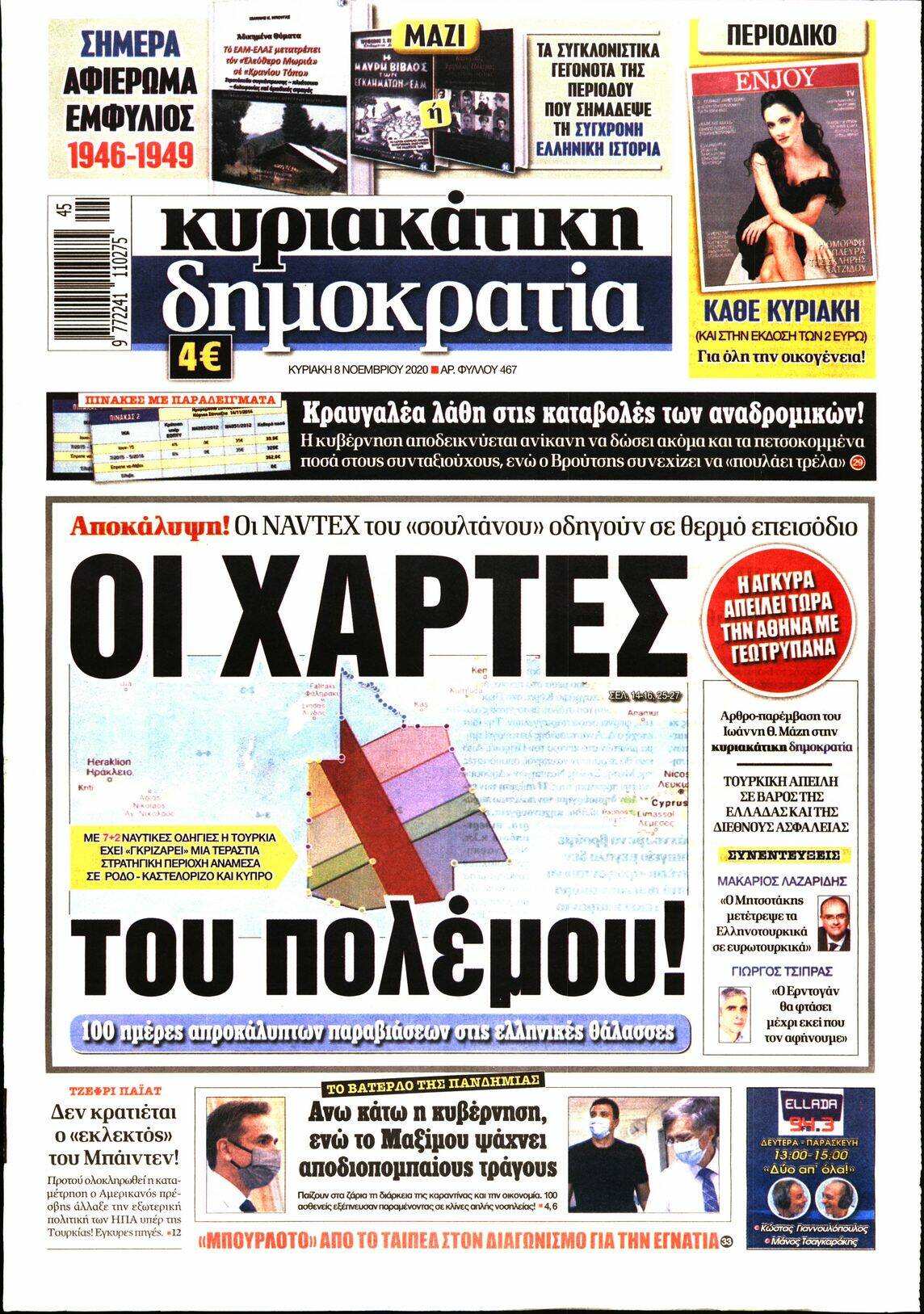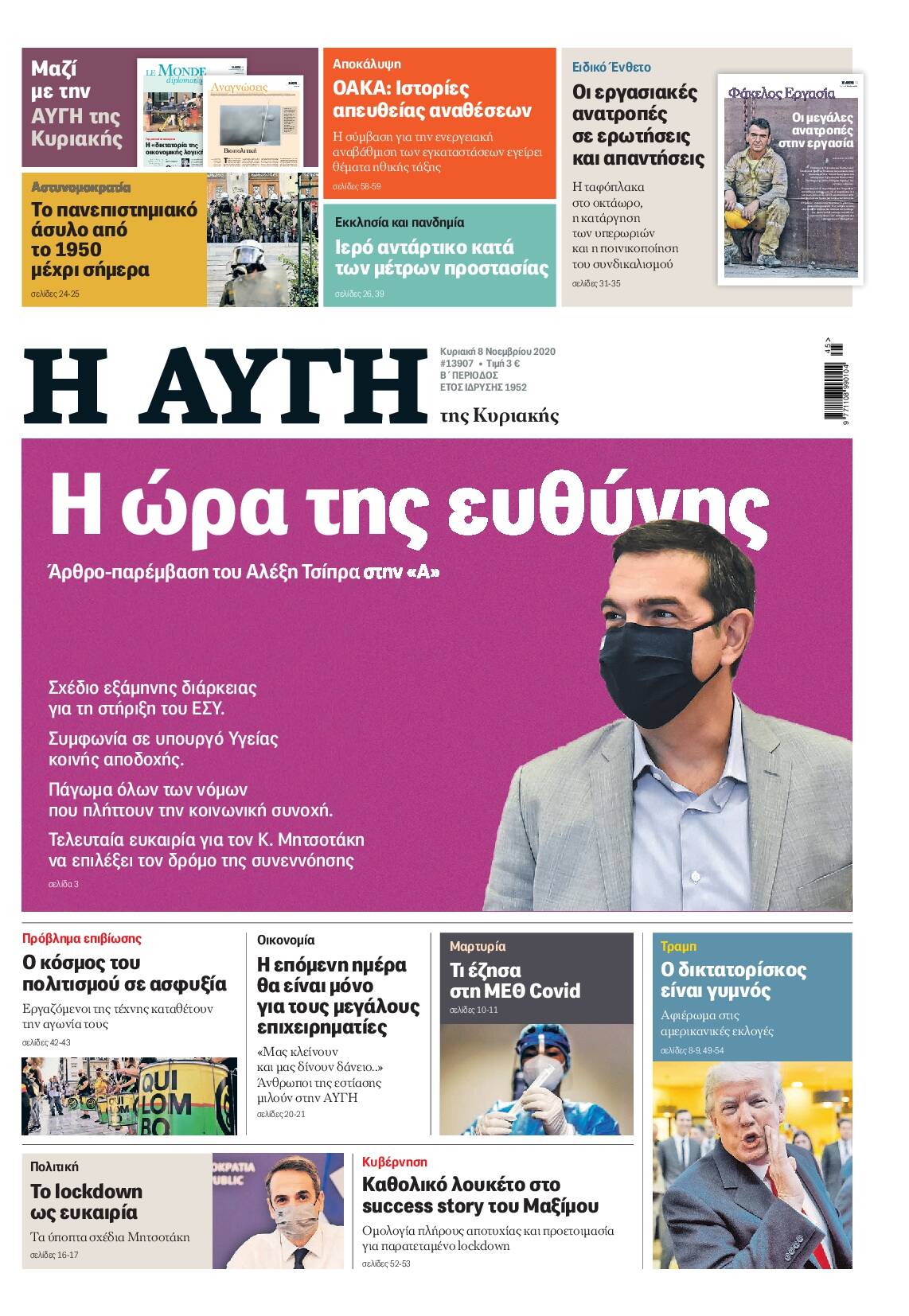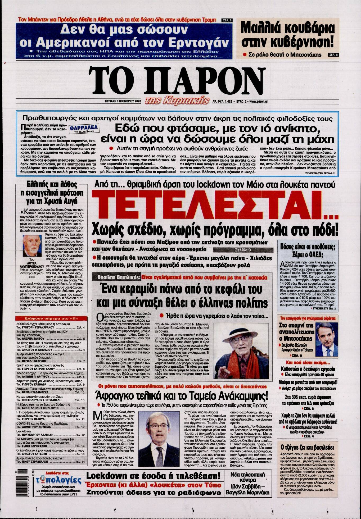 H νέα πραγματικότητα στη χώρα λόγω του νέου γενικού lockdown και οι προεδρικές εκλογές στις ΗΠΑ ξεχωρίζουν μεταξύ άλλων στα πρωτοσέλιδα των κυριακάτικων εφημερίδων.