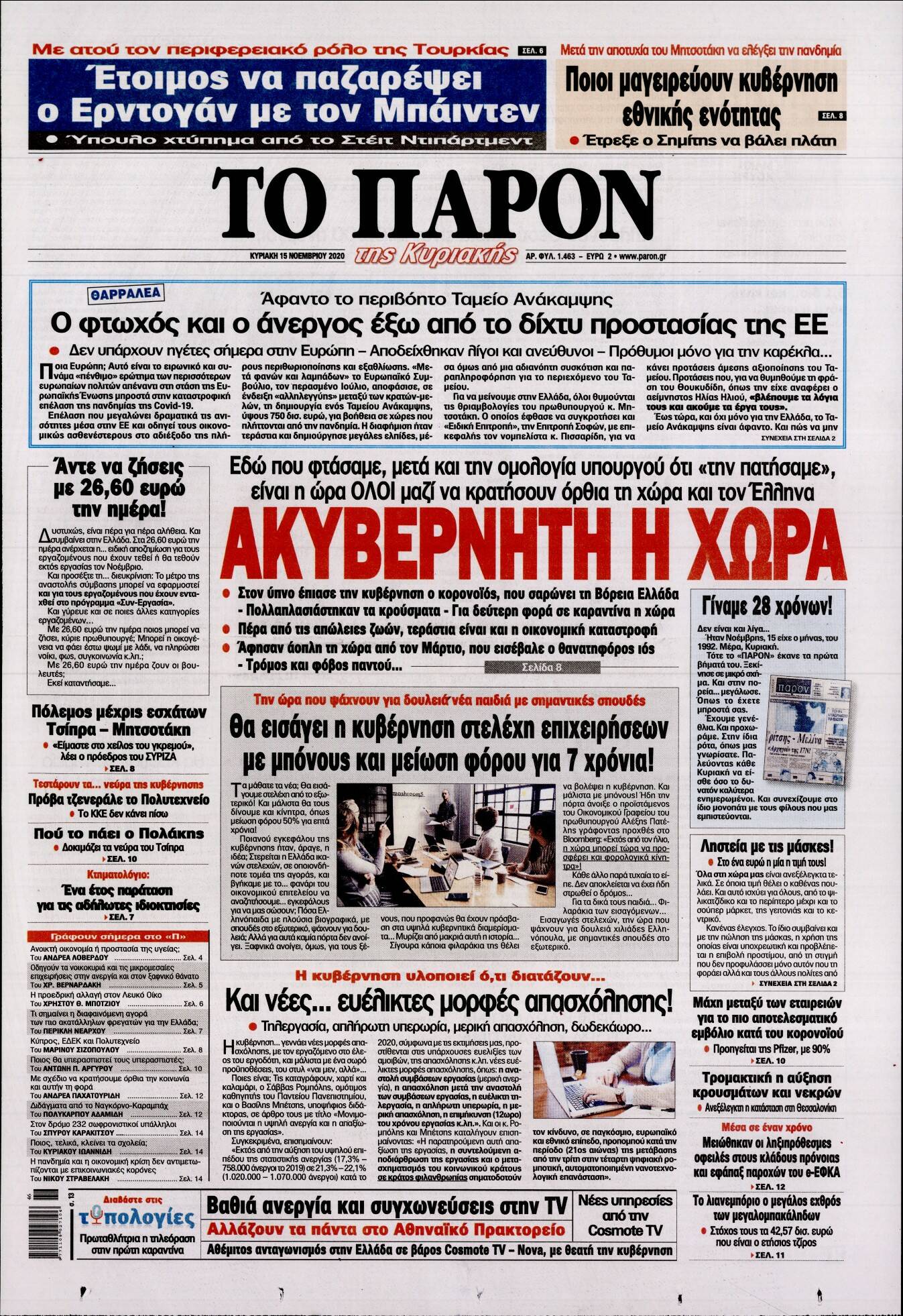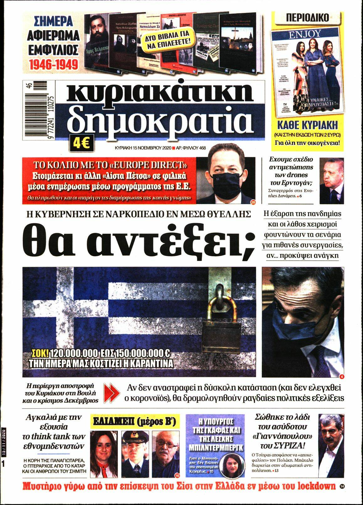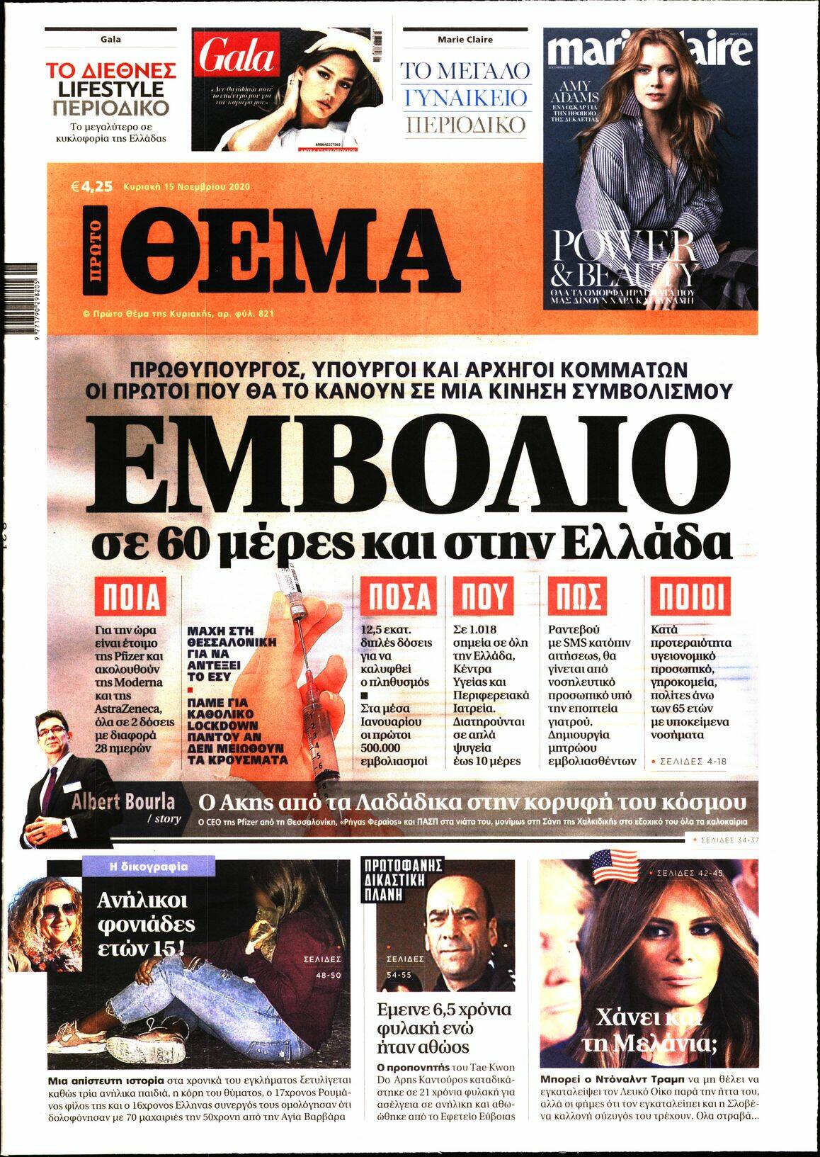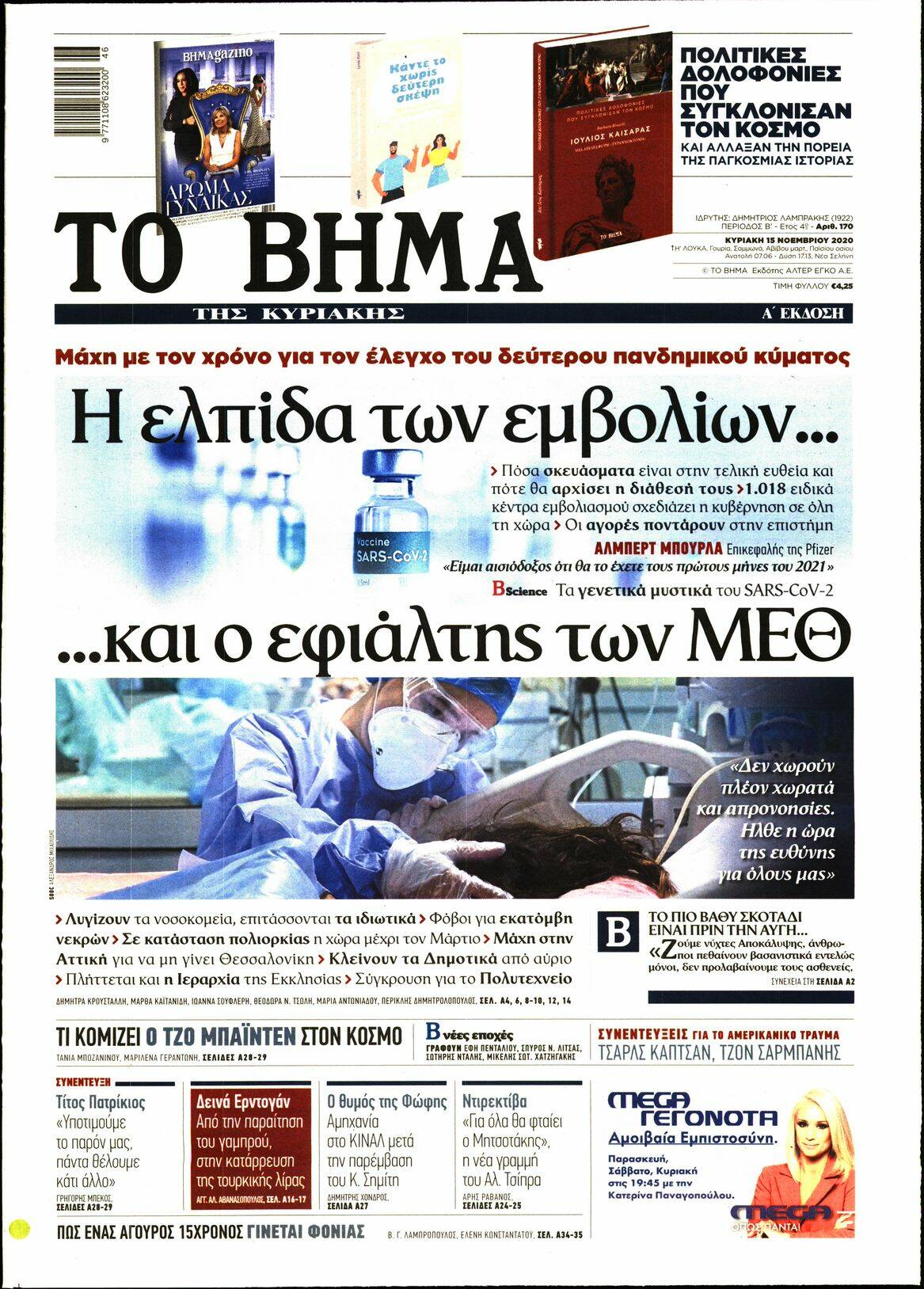 H πορεία της πανδημίας στη χώρα και οι εξελίξεις για το εμβόλιο ξεχωρίζουν μεταξύ άλλων στα πρωτοσέλιδα των κυριακάτικων εφημερίδων.
