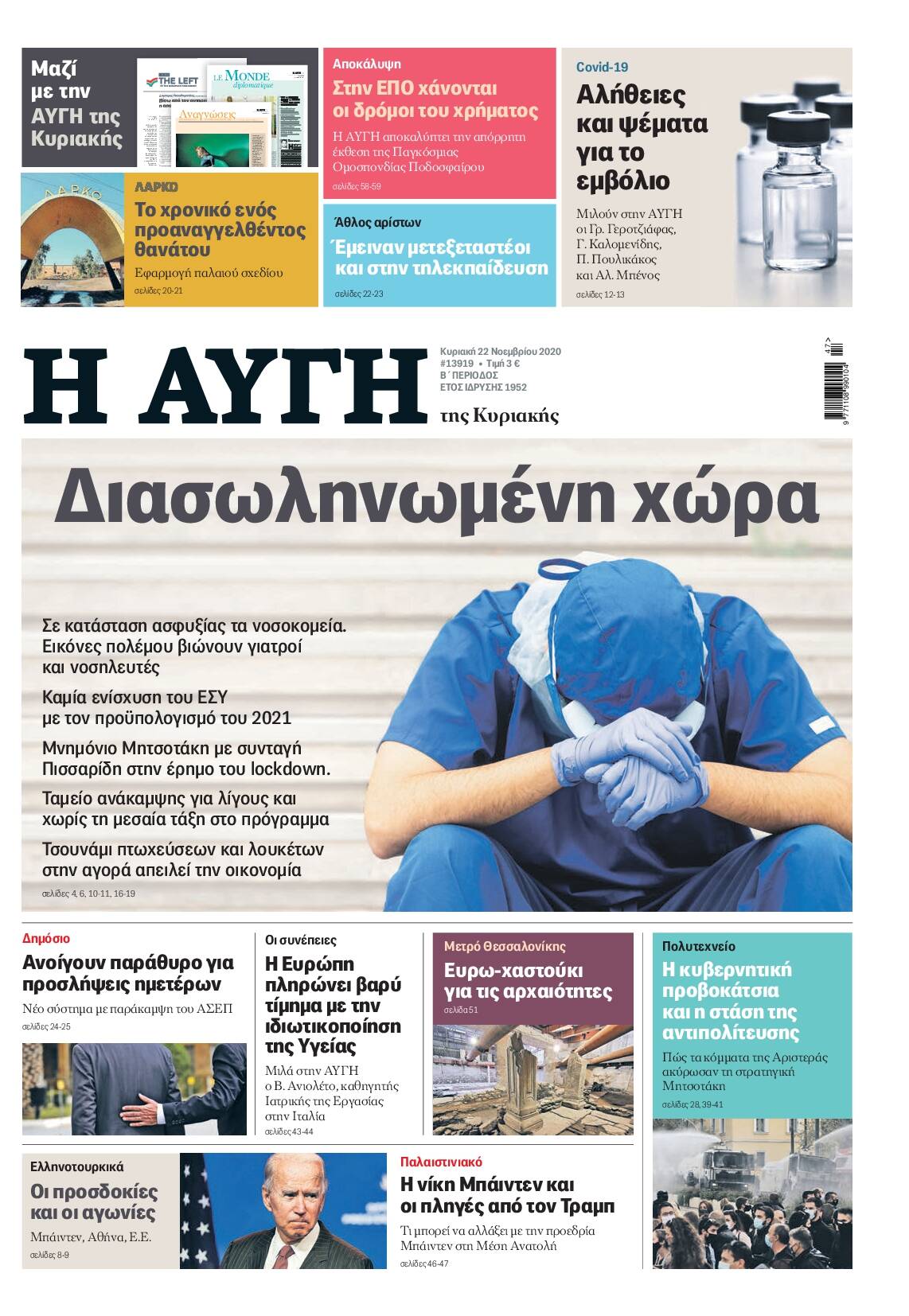 Τα σενάρια για την έξοδο από το lockdown και τα μέτρα στήριξης από την κυβέρνηση ξεχωρίζουν μεταξύ άλλων στα πρωτοσέλιδα των κυριακάτικων εφημερίδων.