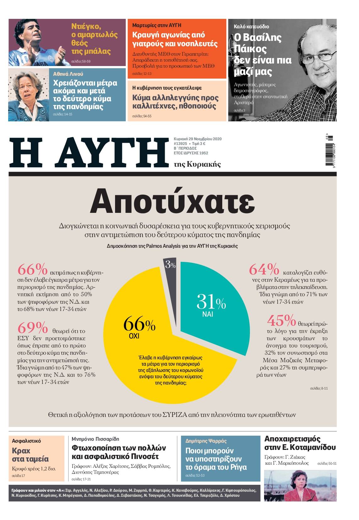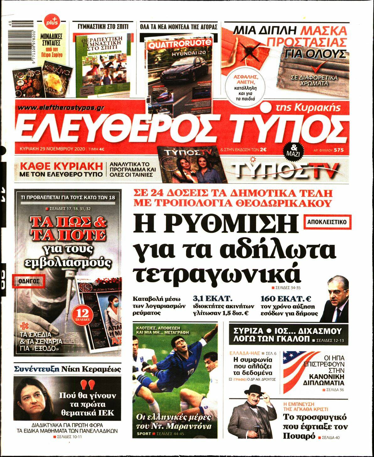 Τα σενάρια για την έξοδο από το lockdown και ο εμβολιασμός για τον κορονοϊό ξεχωρίζουν μεταξύ άλλων στα πρωτοσέλιδα των κυριακάτικων εφημερίδων.