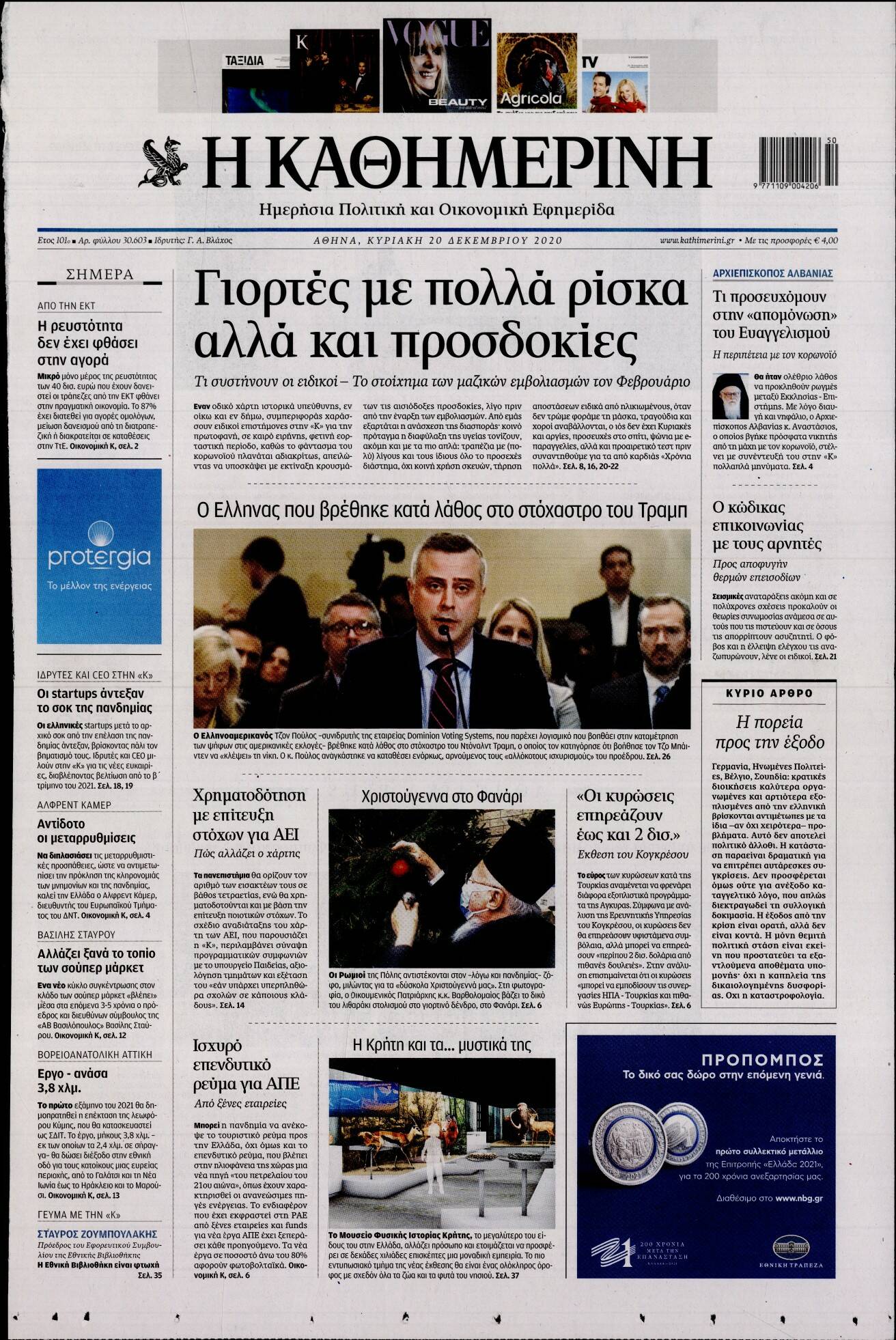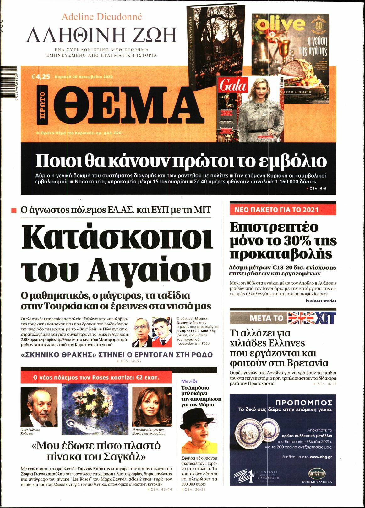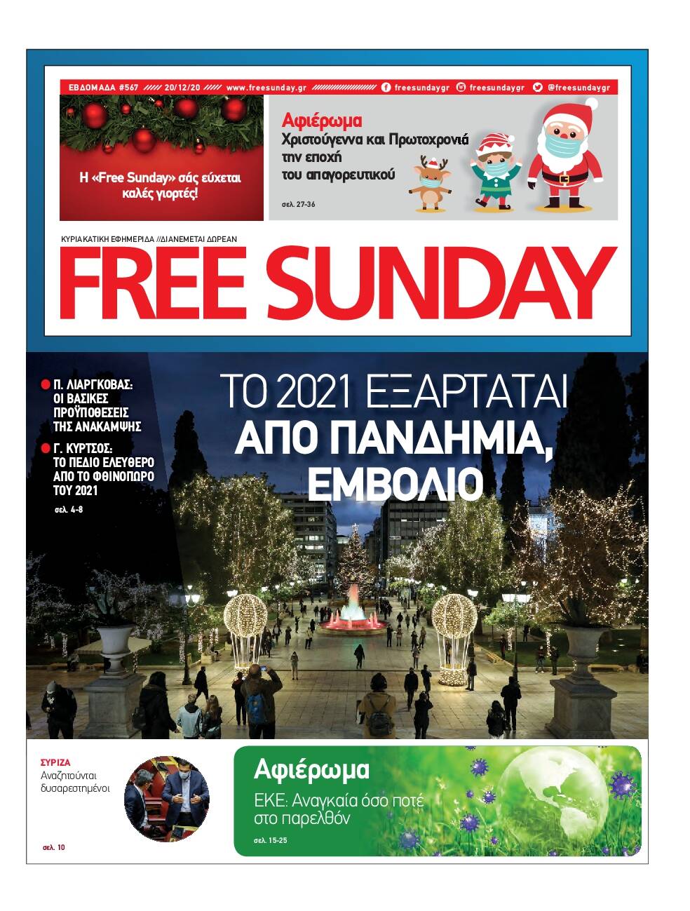 Η πορεία της πανδημίας του κορονοϊού την περίοδο των εορτών, η αντίστροφη μέτρηση για το εμβόλιο και η υπόθεση κατασκοπείας στη Ρόδο ξεχωρίζουν μεταξύ άλλων στα πρωτοσέλιδα των κυριακάτικων εφημερίδων.