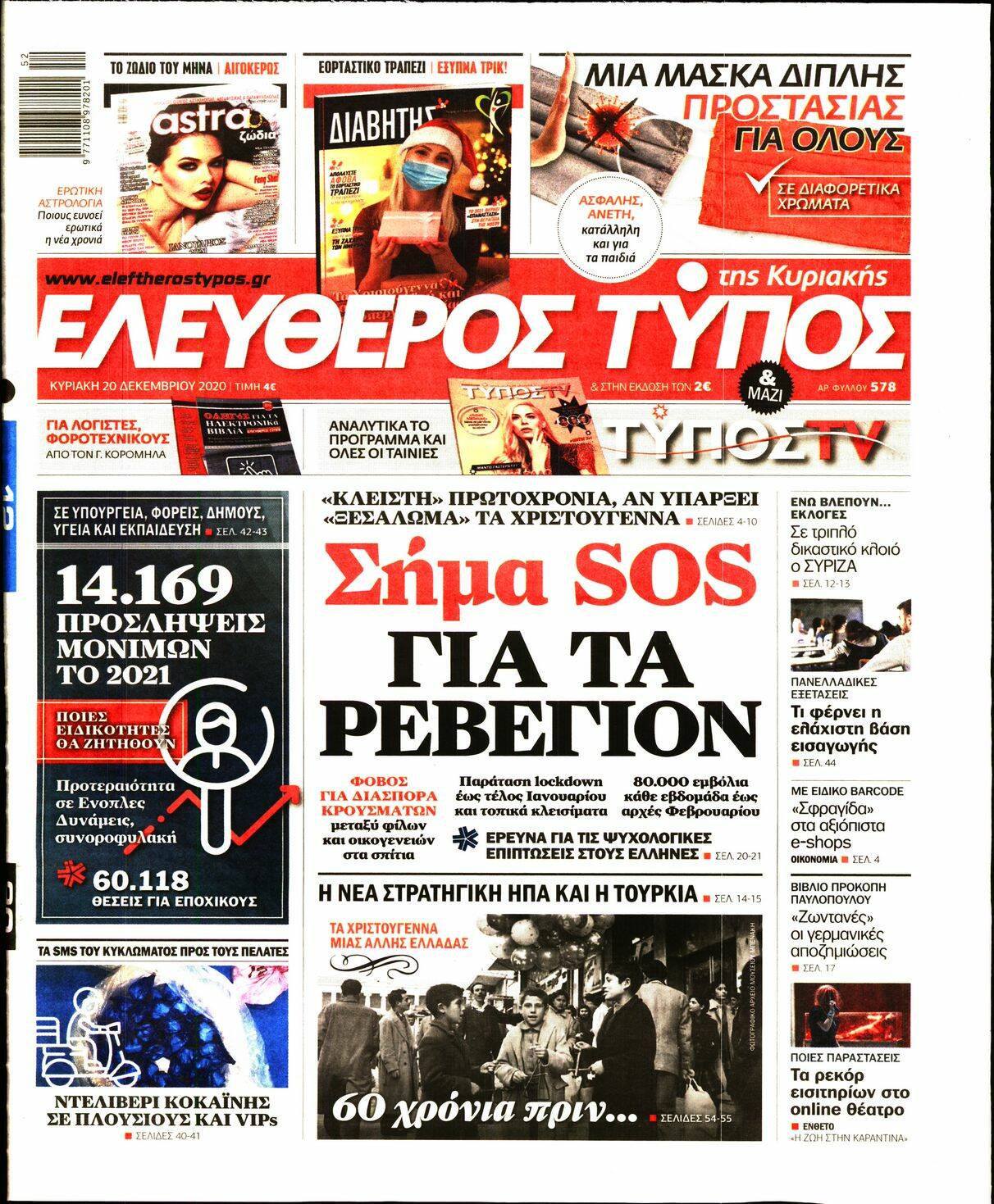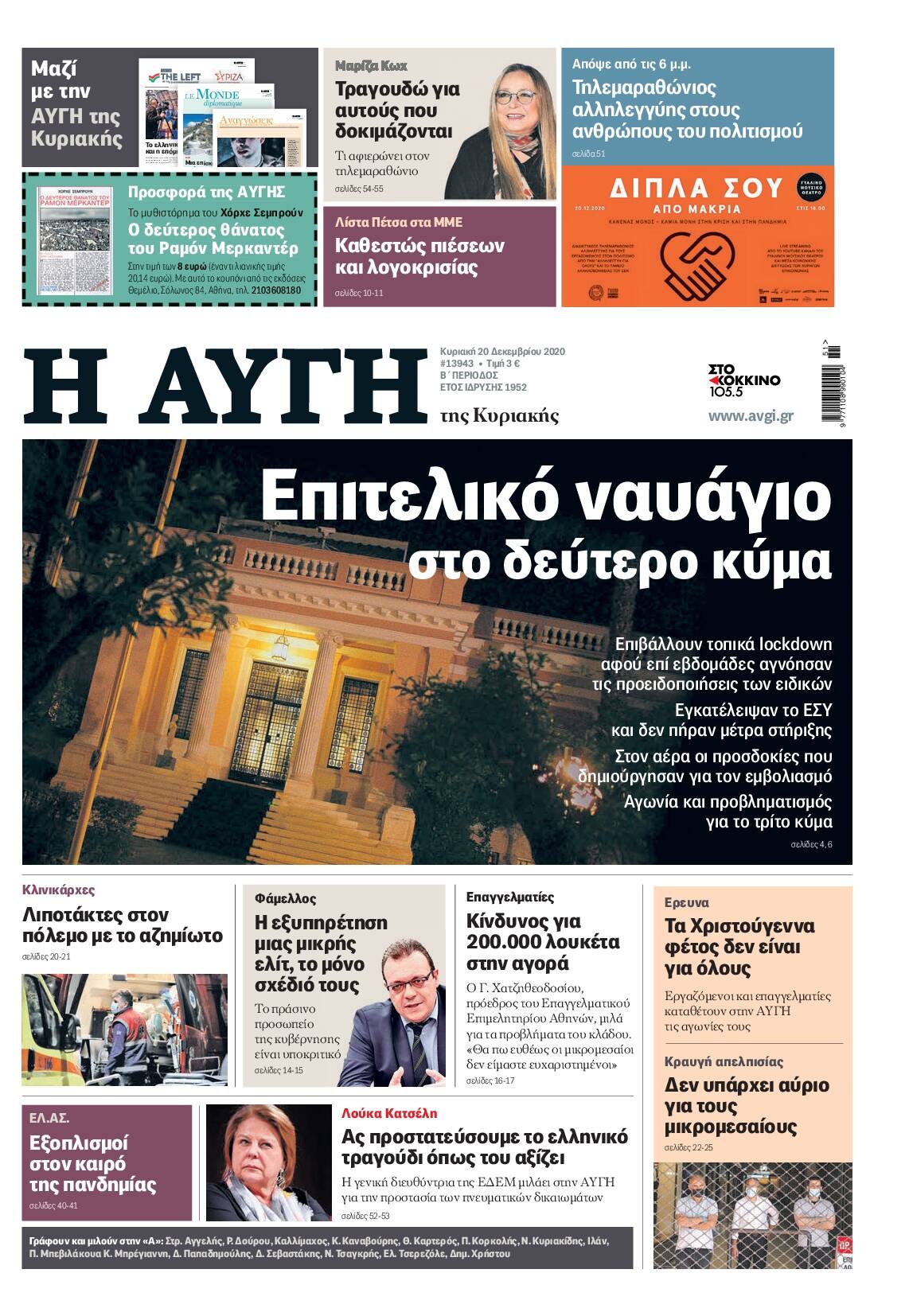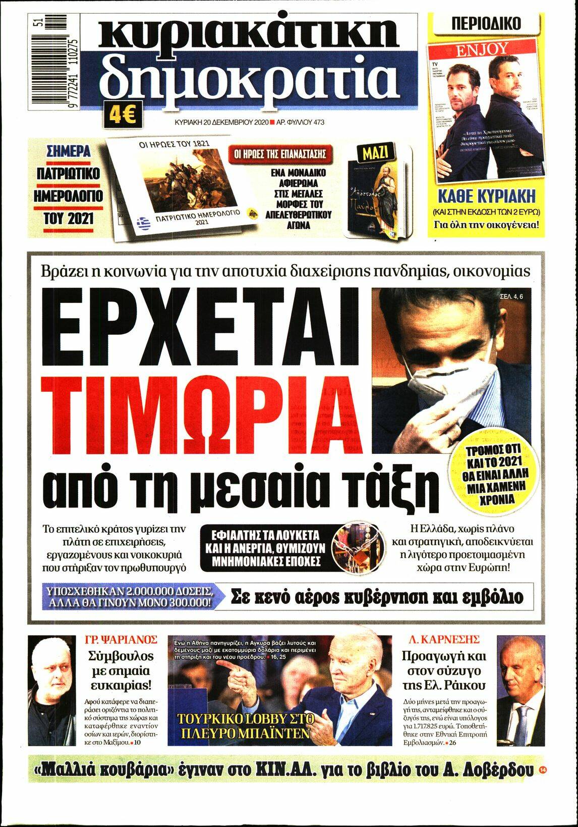 Η πορεία της πανδημίας του κορονοϊού την περίοδο των εορτών, η αντίστροφη μέτρηση για το εμβόλιο και η υπόθεση κατασκοπείας στη Ρόδο ξεχωρίζουν μεταξύ άλλων στα πρωτοσέλιδα των κυριακάτικων εφημερίδων.