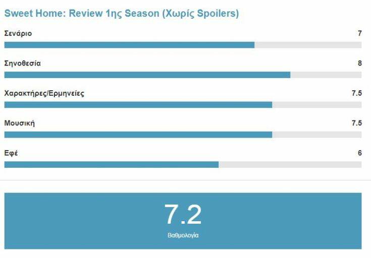 Το Sweet Home σε γενικές γραμμές είναι μια μέτρια επιλογή. Σίγουρα έχει μερικά πολύ καλά στοιχεία όπως η δράση, το δράμα και οι ερμηνείες των ηθοποιών ωστόσο τα κακοφτιαγμένα εφέ των τεράτων μπορούν να σταθούν εμπόδιο στο να κάνετε τα στραβά μάτια. Σε ορισμένες σκηνές βέβαια είναι καλύτερα ή απλά συνηθίζονται αλλά στην πλειοψηφία θυμίζουν γραφικά παιχνιδιών, ένα κακό πάντρεμα του Resident Evil με το Left 4 Dead θα έλεγε κανείς. Απο την άλλη η μουσική και η σκηνοθεσία της σειράς σώζει την κατάσταση. Η 1η σεζόν αποτελείται από 10 επεισόδια που δεν ξεπερνούν τα 55 λεπτά, το τέλος αφήνει πολλά στον αέρα αφήνοντας την πόρτα ανοιχτή για μια 2η σεζόν που έυκολα θα έβλεπα.