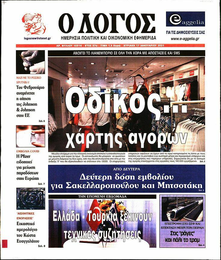 Το πρόγραμμα των εμβολιασμών στην Ελλάδα, εκλογικά σενάρια, Το άνοιγμα των αγορών και οι νέες ισορροπίες με την Τουρκία στο Αιγαίο είναι μεταξύ άλλων τα θέματα που κυριαρχούν στα πρωτοσέλιδα των κυριακάτικων εφημερίδων.