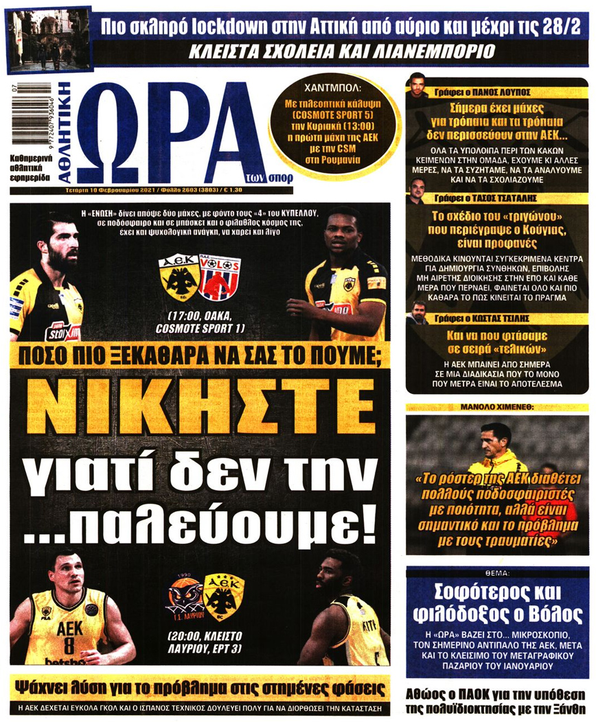 Το πρωτοσέλιδο της «Ώρας των Σπορ», που ασχολείται με το ρεπορτάζ της Ένωσης, είναι χαρακτηριστικό για τα συναισθήματα με τα οποία οι υποστηρικτές του συλλόγου υποδέχονται τα δύο αυτά παιχνίδια. «Νικήστε, γιατί δεν την παλεύουμε», είναι η παράκληση προς τις δύο ομάδες, με τα ματς τους να έρχονται λίγες ώρες μετά τις εξαγγελίες για lockdown στην Αττική.