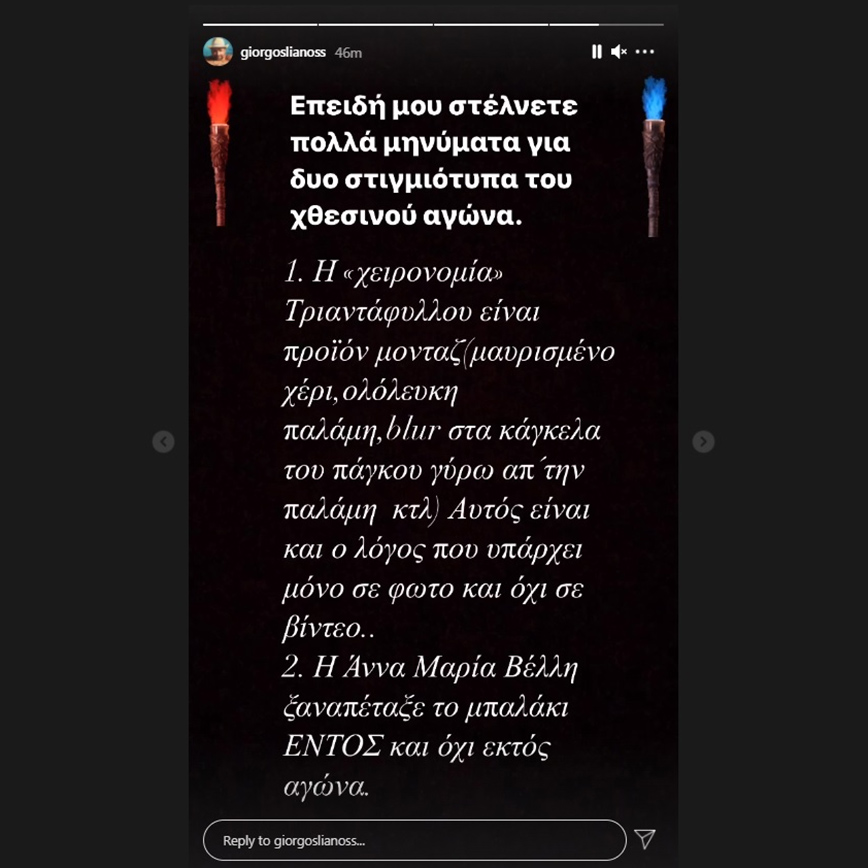 Ο Γιώργος Λιάνος μέσω του προσωπικού του λογαριασμού στο Instagram έδωσε τις απαντήσεις του για τα δυο αυτά πλάνα.