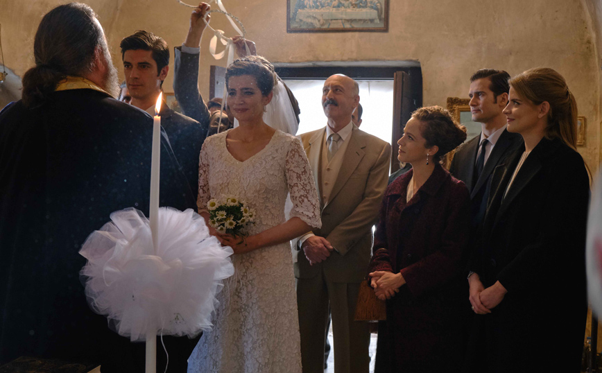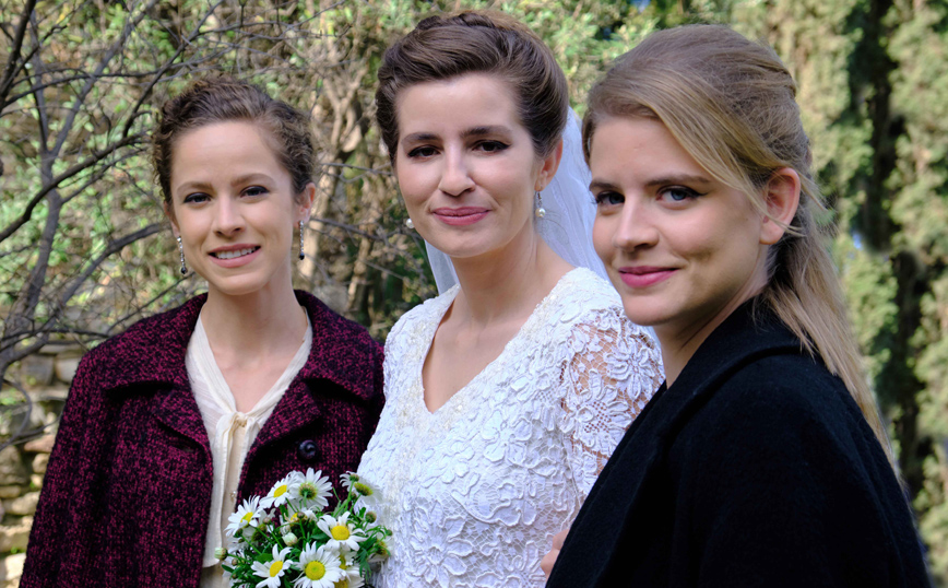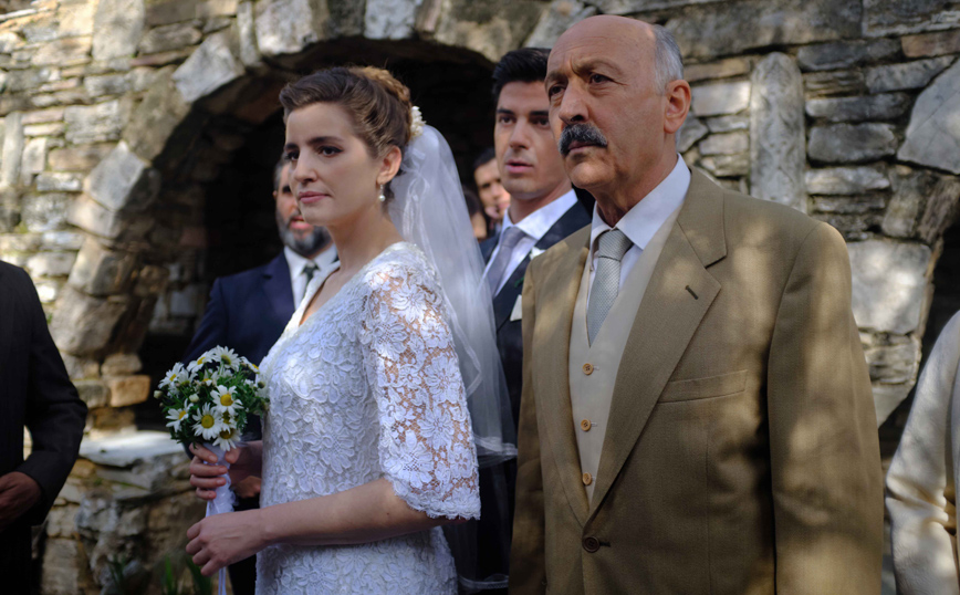 Οι κάτοικοι του χωριού φόρεσαν τα καλά τους και στέκονται στο πλευρό του Λάμπρου και της Ελένης και μοιράζονται τη χαρά τους την πιο ευτυχισμένη μέρα τους.