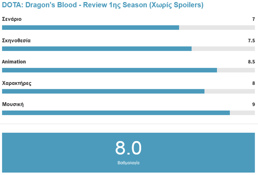 Ο κόσμος του DOTA “ζωντανεύει” για λογαριασμό του Netflix και η πρώτη σεζόν σίγουρα μας δίνει μια πολύ καλή ιδέα για αυτόν. Τα 8 επεισόδια μας γνωρίζουν τους χαρακτήρες της σειράς αλλά και τους εχθρούς τους. Ένα ταξίδι σε έναν πολύ επικίνδυνο αλλά όμορφο κόσμο γεμάτο δράση και βία δοκιμασμένη συνταγή για να πούμε πως η σειρά θα είναι επιτυχία.