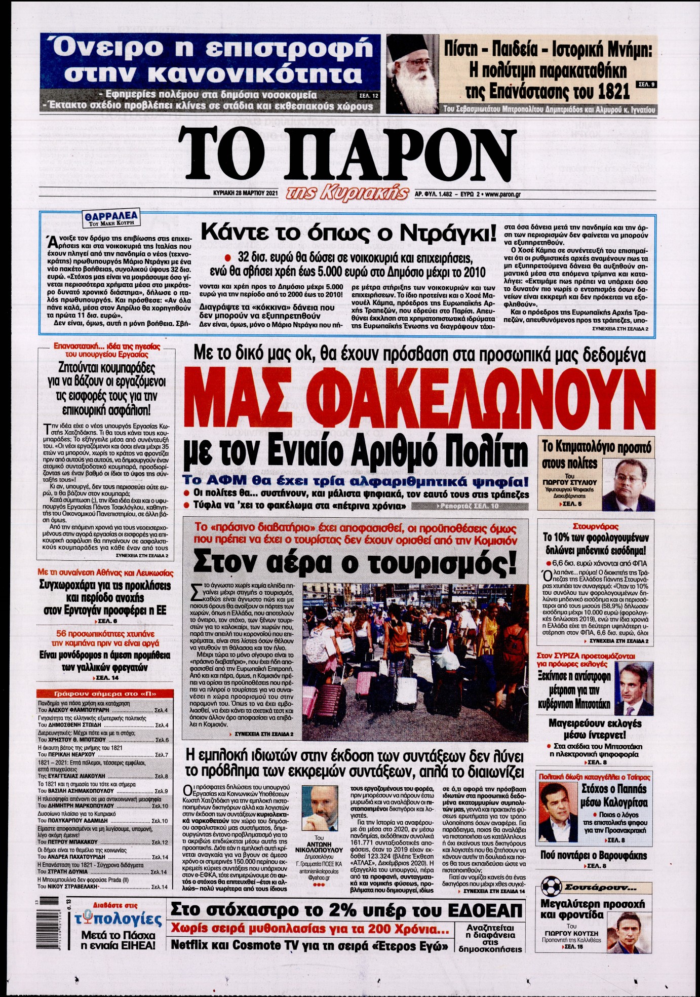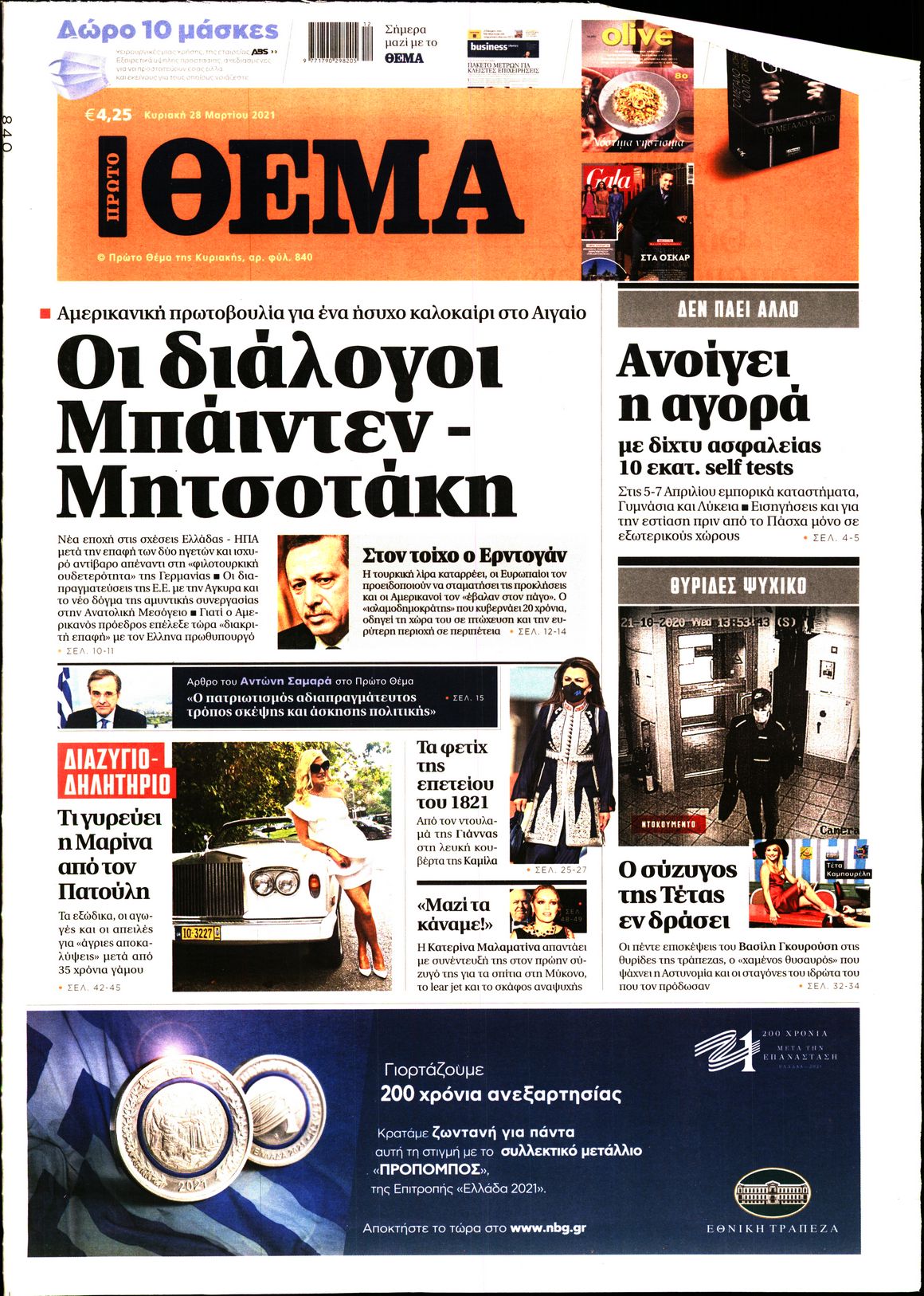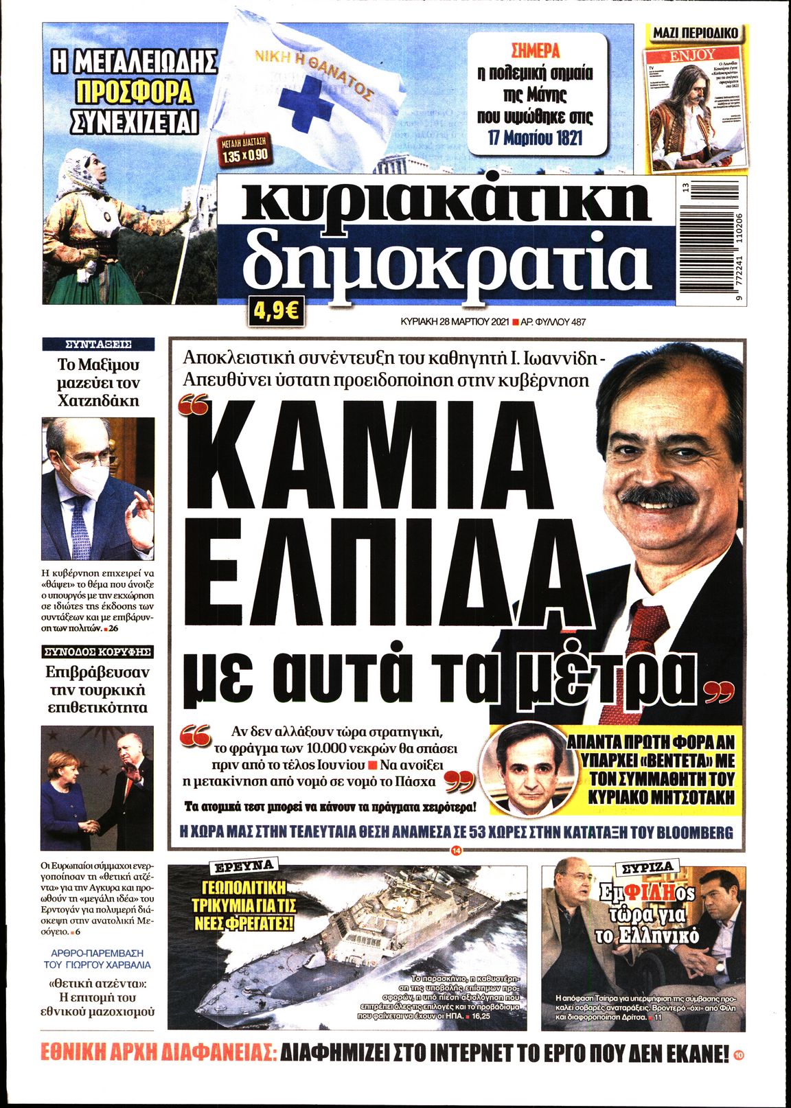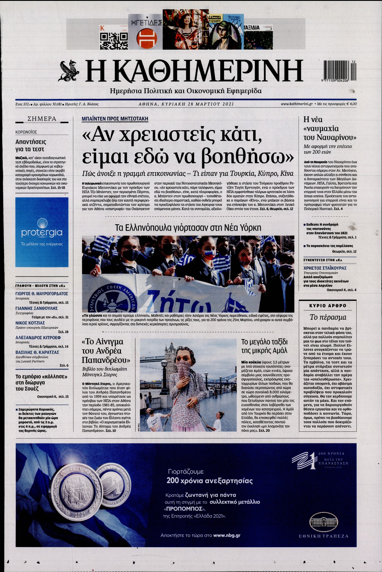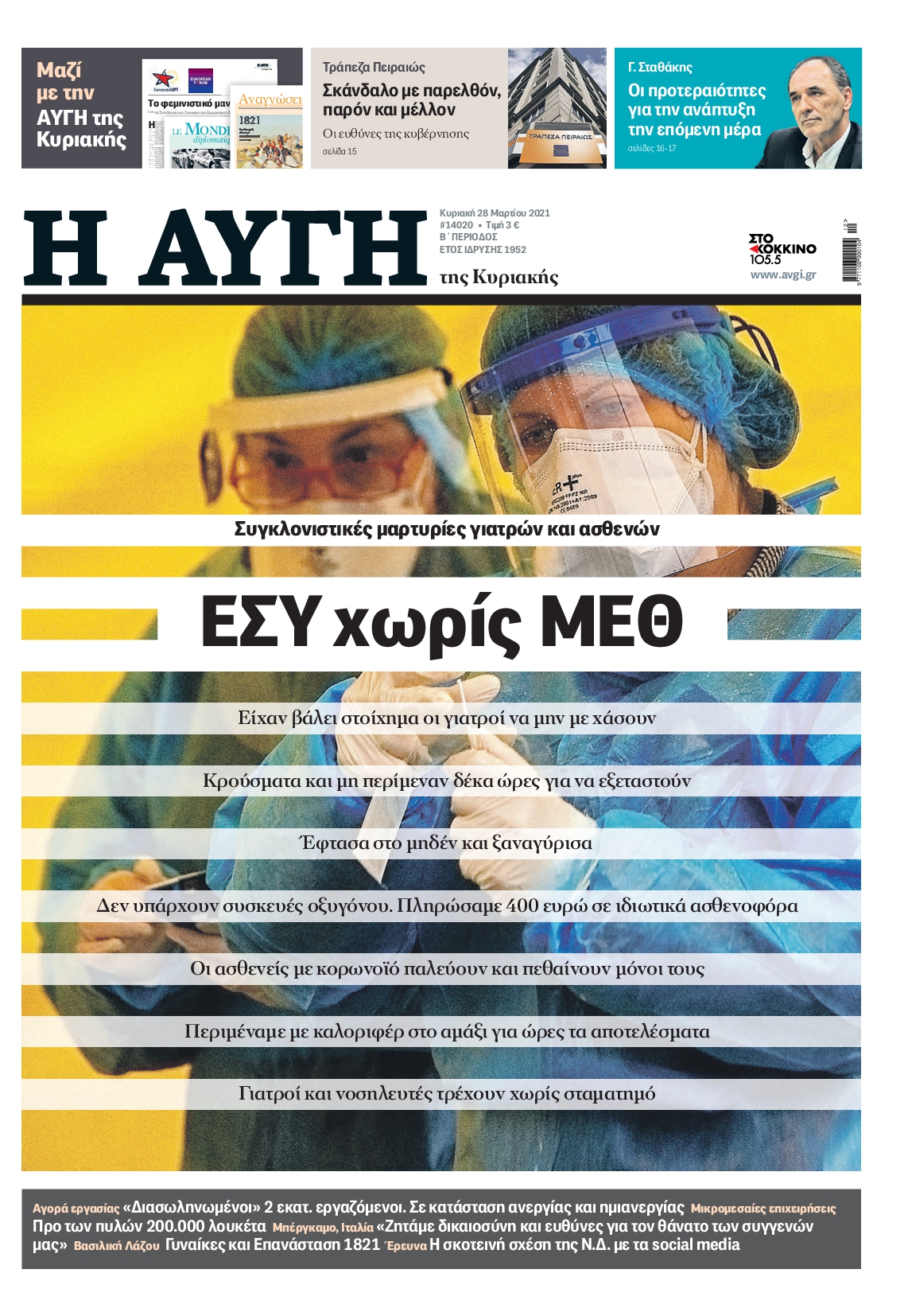 Οι δυσκολίες που αντιμετωπίζει το ΕΣΥ εν μέσω πανδημίας και η πρώτη επικοινωνία του Κυριάκου Μητσοτάκη με τον Τζο Μπάιντεν είναι μεταξύ άλλων τα θέματα που κυριαρχούν στα πρωτοσέλιδα των κυριακάτικων εφημερίδων.