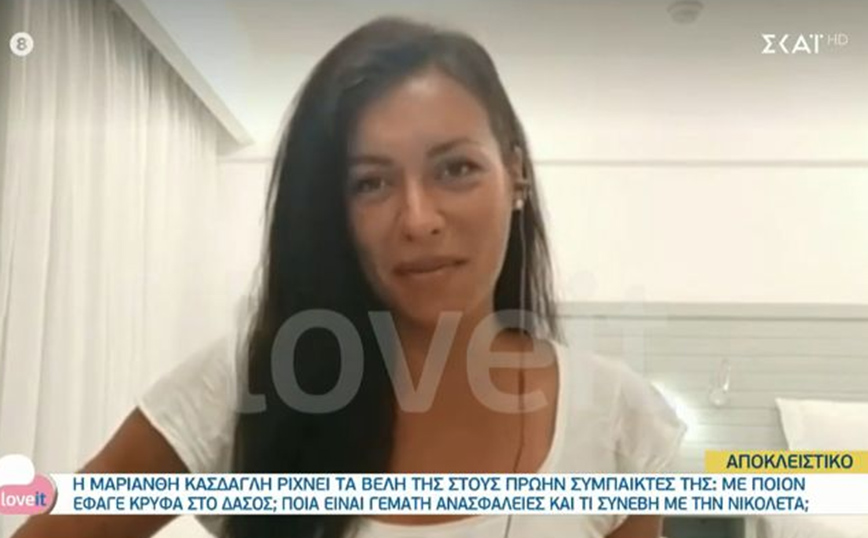 «Είμαι πάρα πολύ καλά, αν και ήθελα να παραμείνω στο παιχνίδι. Τη στιγμή της αποχώρησης εγώ δεν έβλεπα πίσω μου, δεν είχα δει πως όλα τα παιδιά είχαν πάει πάνω στην Ελένη. Αλλά εντάξει χάρηκαν τα παιδιά. Δεν ξέρω αν πραγματικά το είπε αυτό η Καρολίνα για μένα. Την επόμενη μέρα την έπιασα και τη ρώτησα και δεν μου απάντησε. Κάτι που δείχνει πως έχει λερωμένη τη φωλιά της» ανέφερε αρχικά η Μαριάνθη Κάσδαγλη.