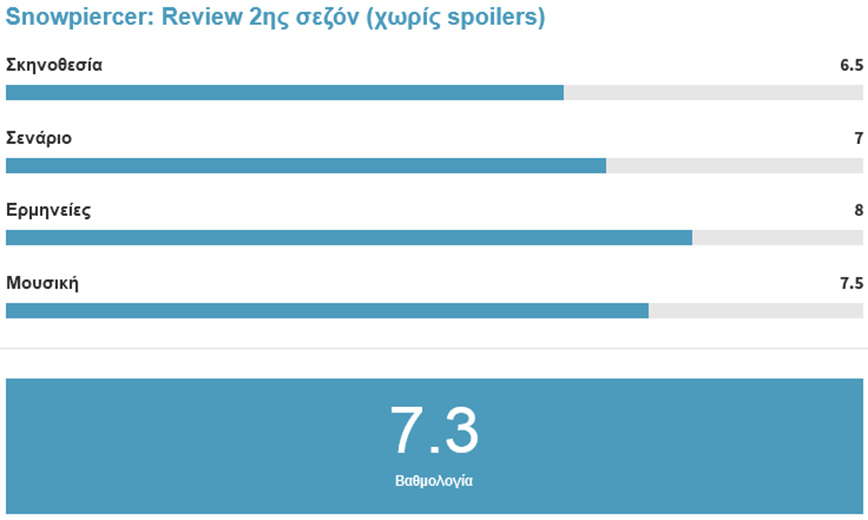 Μπορεί η 1η σεζόν του Snowpiercer να μου δημιούργησε μία γεύση «γλυκόπικρη», καθώς δεν πέτυχε με 100% ποιοτικό τρόπο αυτό που ήθελε, όμως με άφησε με την εντύπωση πως η επόμενη σεζόν θα είναι καλύτερη.