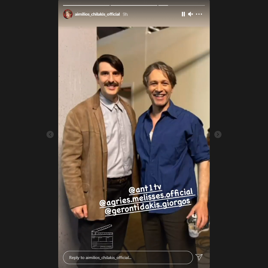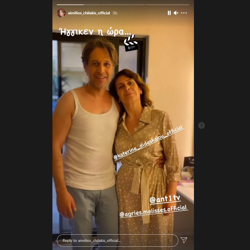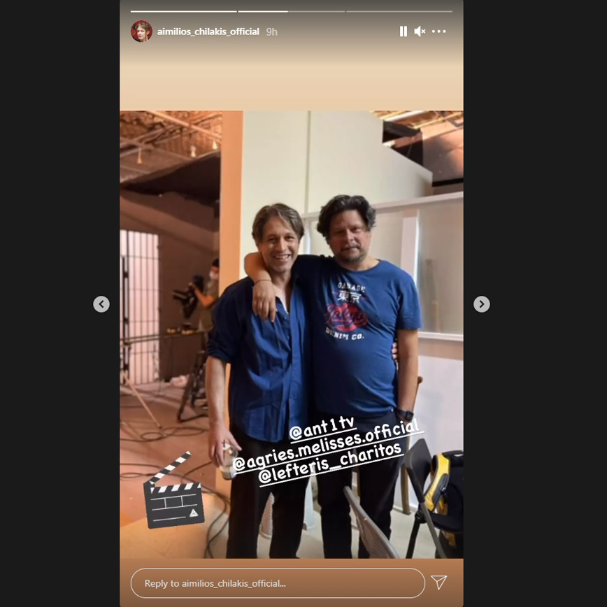 Συγκεκριμένα, πόσταρε τρεις εικόνες στις οποίες ποζάρει με τον σκηνοθέτη Λευτέρη Χαρίτο, την Κατερίνα Διδασκάλου και τον Γιώργο Γεροντιδάκη.
