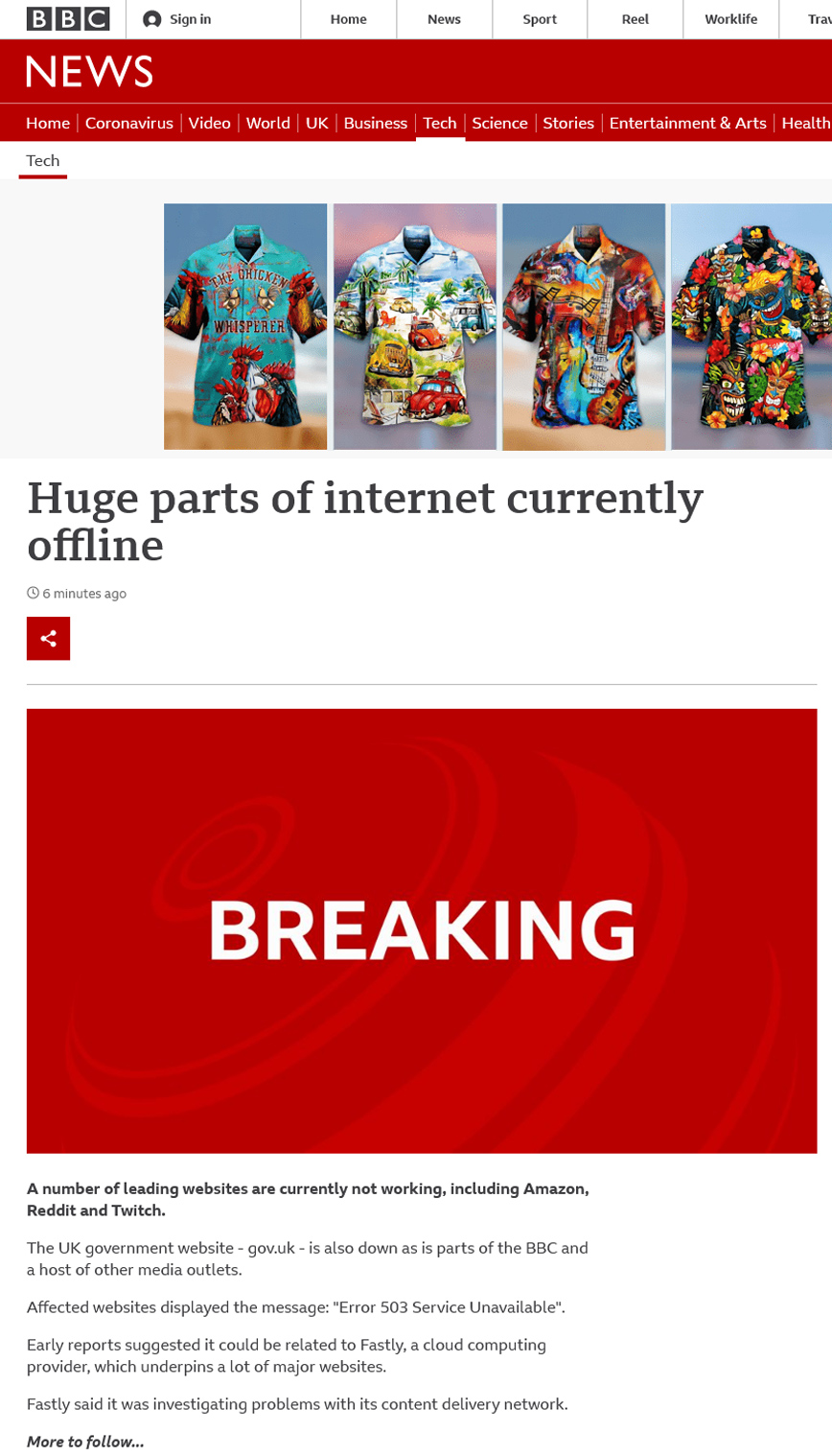Ο ιστότοπος gov.uk εμφάνιζε «Error 503 Service Unavailiable» περίπου στις 13:20 ώρα Ελλάδας ενώ εκτός λειτουργίας είναι και η πλατφόρμα Reddit.