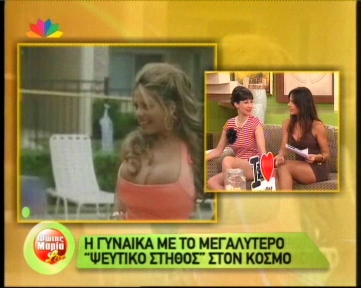 Τη γυναίκα με το μεγαλύτερο «ψεύτικο» στήθος στον κόσμο παρουσίασαν στην απογευματινή εκπομπή του STAR «Φώτης και Μαρία live», με αποτέλεσμα ο Φώτης να «νιώσει μια μικρή ζαλάδα»!