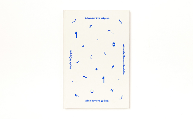 Η «Επετειακή Έκδοση 10+1» δημιουργήθηκε με αφορμή τη συμπλήρωση 10+1 χρόνων από την ίδρυση της Advocate/Burson-Marsteller και περιέχει σκέψεις της διευθύνουσας συμβούλου της εταιρείας, Μαρίας Λαζαρίμου, σχετικά με τα πολλαπλά πρόσωπα των Δημοσίων Σχέσεων αλλά και τη χρησιμότητά τους για τις επιχειρήσεις.