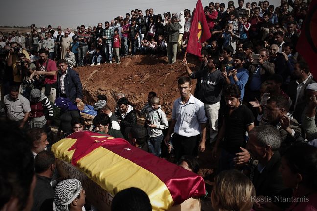 Αυτό είναι λίγο δύσκολο. Δεν είναι μόνο οι βομβαρδισμοί και οι μάχες που μπορεί να έβλεπες και να άκουγες, οι σφαίρες που πέρναγαν από δίπλα σου… Οι προεκτάσεις αυτής της κατάστασης, όπως οι πρόσφυγες, είναι εξίσου σημαντικές. Ίσως μπορώ να ξεχωρίσω μία κατάσταση που έζησα. Είναι από μια κηδεία που παρευρέθηκα στο Suruç όπου κηδεύτηκαν τέσσερις γυναίκες οι οποίες έπεσαν στις μάχες στο Κομπάνι. Αυτό που είδα, αλλά πολύ περισσότερο… ένιωσα, ήταν, ότι αυτό όπου συνέβαινε μπροστά μου και κατέγραφα με την κάμερά μου, δεν ήταν κηδεία. Κλάματα δεν υπήρχαν σχεδόν καθόλου. Ήταν ένας ύμνος σε αυτές τις γυναίκες που έπεσαν στη μάχη άξια και με το κεφάλι ψηλά!