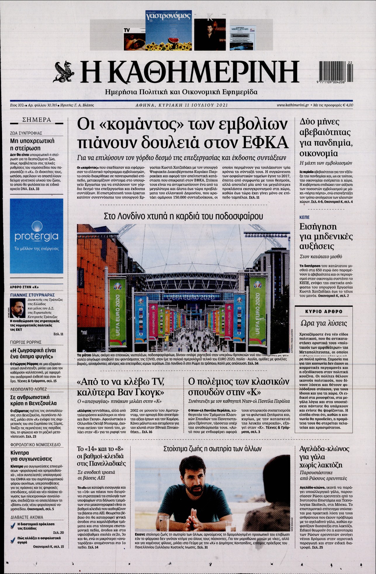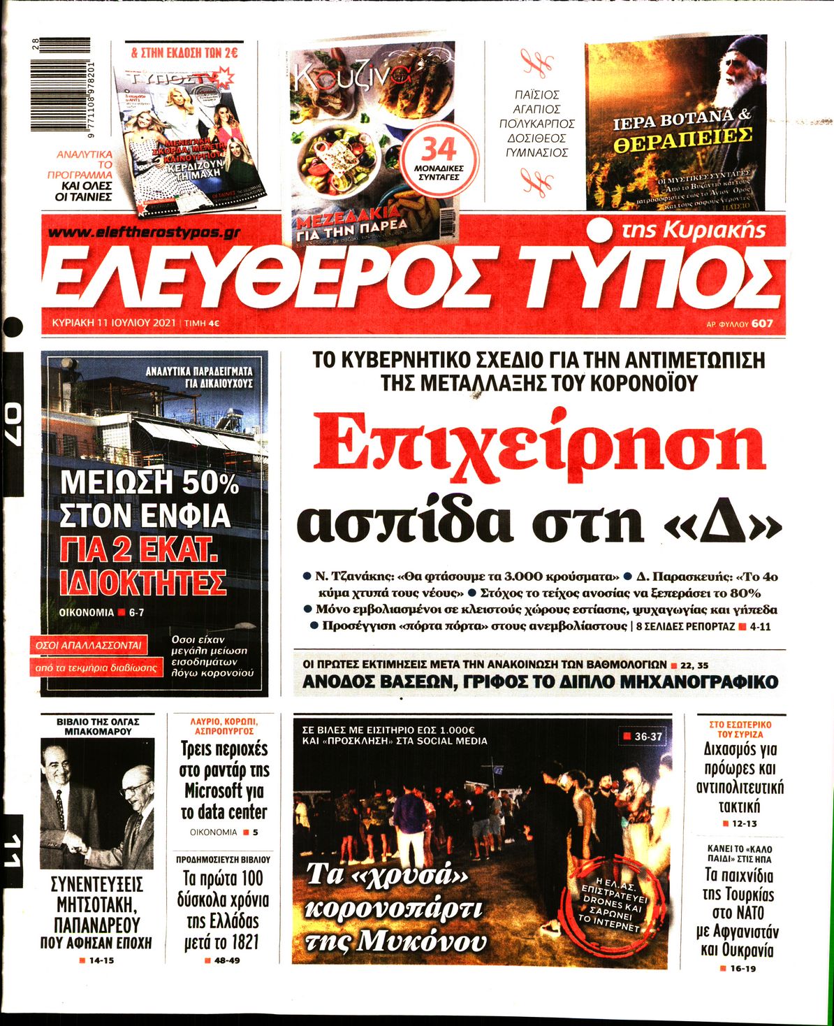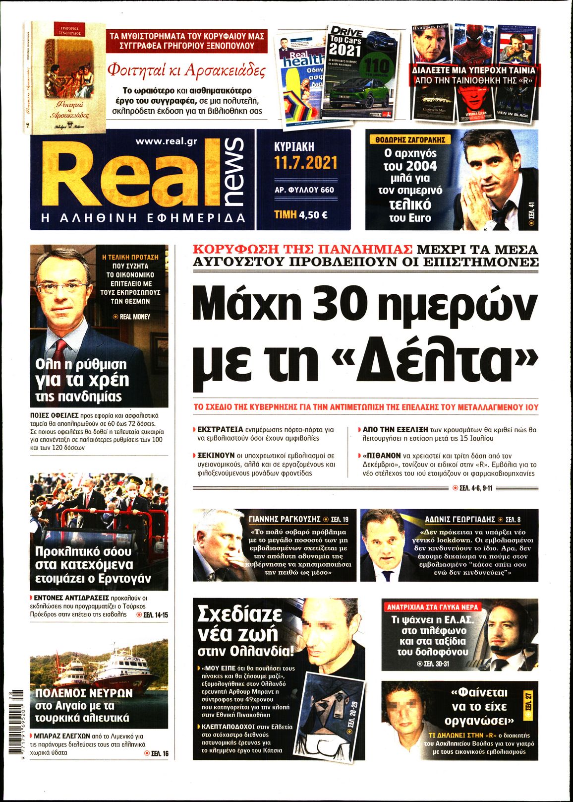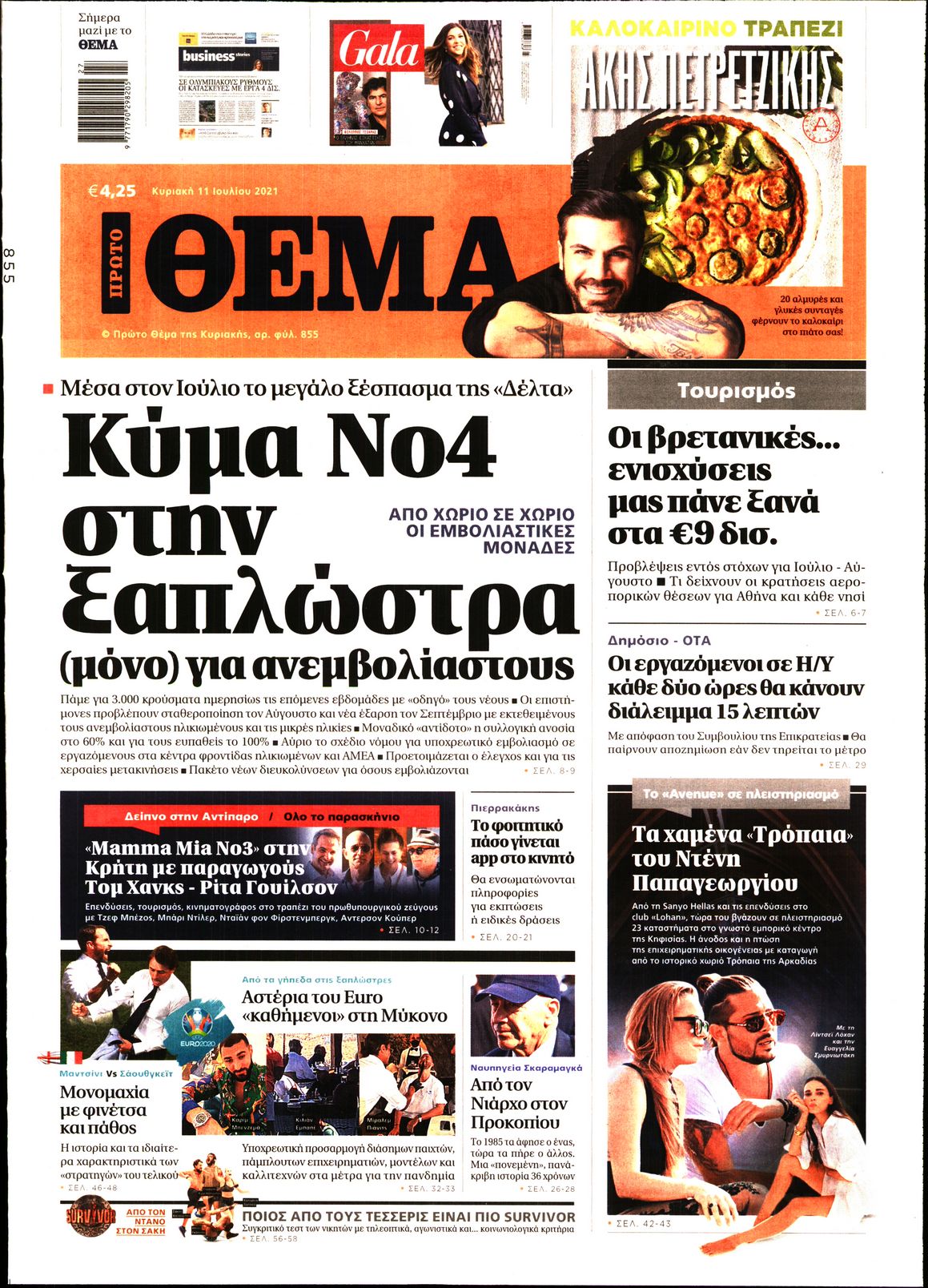 Το τέταρτο κύμα της πανδημίας, η μετάλλαξη Delta και η πορεία των εμβολιασμών είναι μεταξύ άλλων τα θέματα που κυριαρχούν στα πρωτοσέλιδα των κυριακάτικων εφημερίδων.