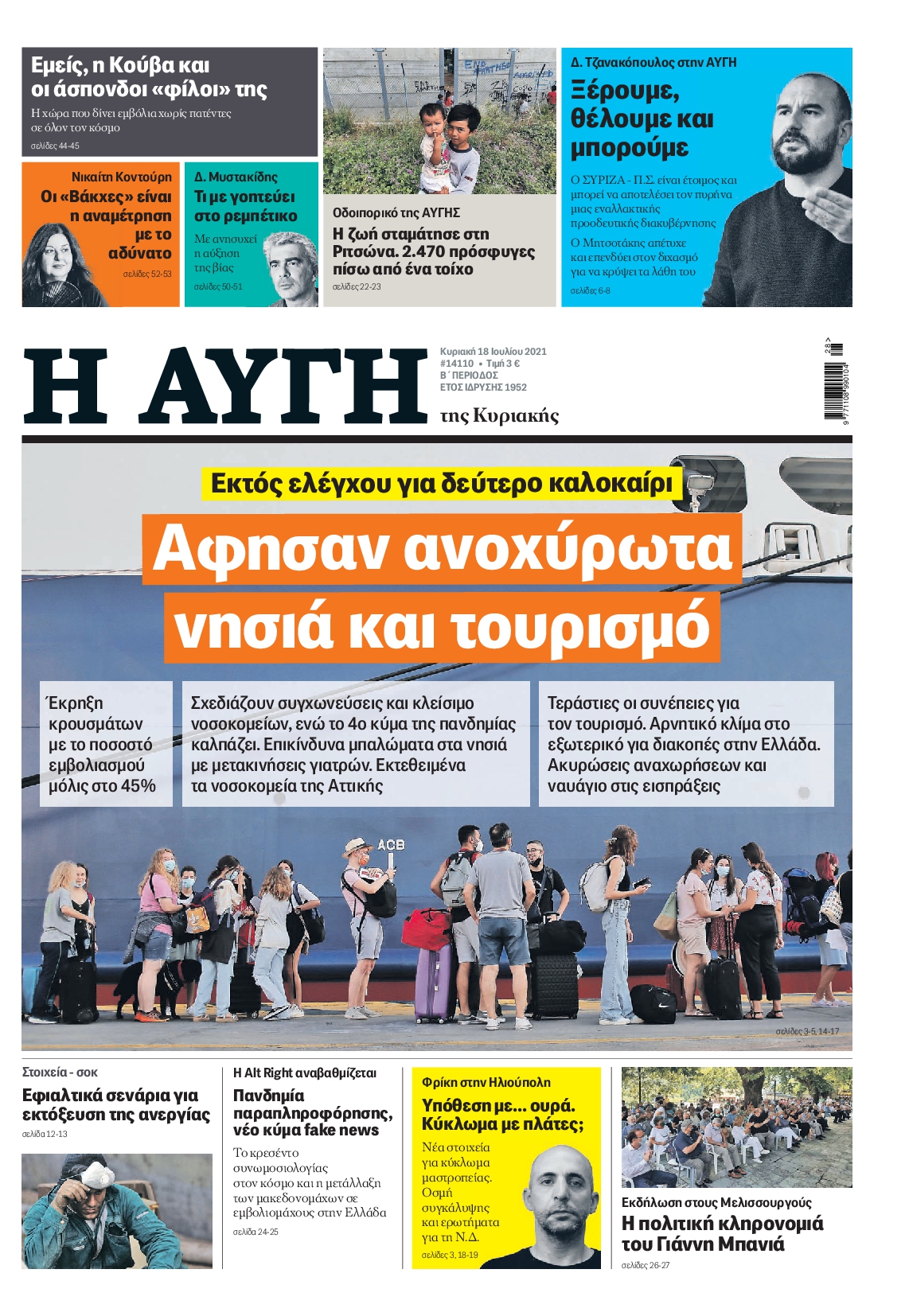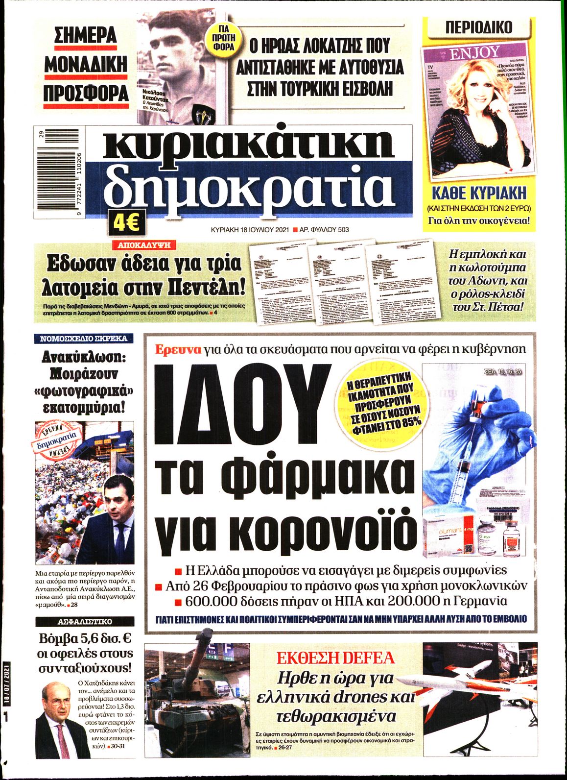 H πορεία της πανδημίας στη χώρα και των εμβολιασμών είναι μεταξύ άλλων τα θέματα που κυριαρχούν στα πρωτοσέλιδα των κυριακάτικων εφημερίδων.