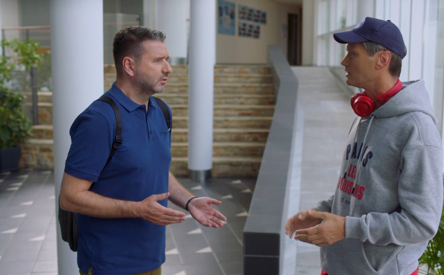Οι… γλωσσικές εκπλήξεις δεν σταματούν όμως εκεί για τον Γρηγόρη, καθώς στη συνέχεια διασταυρώνεται με τους Ισίδωρο Πρίντεζη και Γιαννίκο Δούσκα και αρχίζουν τα… γαλλικά! Η συνέχεια όμως έχει χρώμα και άρωμα Άπω Ανατολής, καθώς στα γραφεία εμφανίζεται η μπασκετική ομάδα με το κιμονό της MVP Δώρας Παντέλη να κλέβει τις εντυπώσεις, ενώ ο… made in USA Χρήστος Καούρης αλλά και οι experts Δημήτρης Καρύδας και Νικήτας Αυγουλής σχολιάζουν με τον δικό τους ξεχωριστό μπασκετικό τρόπο τι έρχεται στο Novasports.