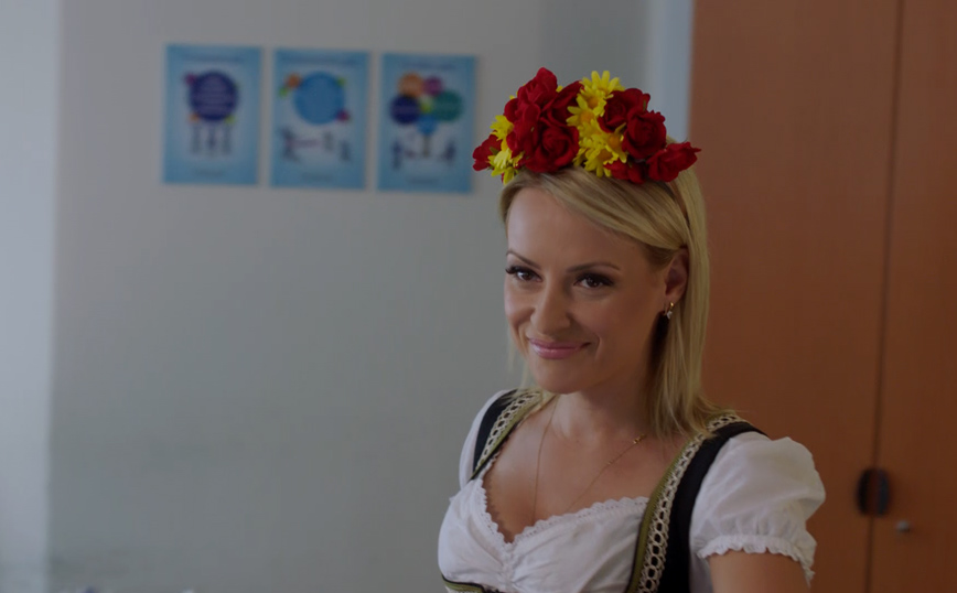 Η συνέχεια έχει μουσική υπόκρουση και…. γεύση Γερμανίας! Με τους Άγγελο Στυλιάδη, Γιώργο Λιώρη, Γιώργο Βασιλείου και τη μοναδική Λίλα Κουντουριώτη με αμφίεση Βαυαρικών Άλπεων να προσφέρει τα σπιτικά της Brezel και τον Τάσο Μπαϊρακτάρη να εισέρχεται για το παραδοσιακό τσούγκρισμα «Prost»! Και ενώ ο Γρηγόρης Παπαβασιλείου νομίζει ότι τα έχει δει όλα, το αποκορύφωμα έρχεται με την αμφίεση της Λίλας Κουντουριώτη με μελαχρινό και latin look πλέον καθώς κοιτάει σε ένα tablet το πλούσιο premium περιεχόμενο του Novasports για τη νέα σεζόν!