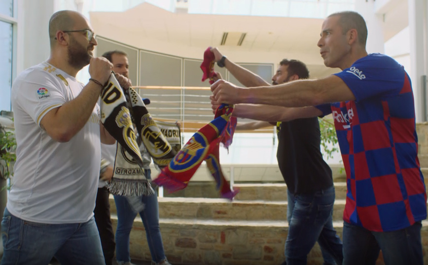 Και αυτό το διαπίστωσε από πρώτο χέρι ο… Γρηγόρης Παπαβασιλείου μπαίνοντας στα γραφεία του Novasports. Όπως φαίνεται στο video που επιμελήθηκε η ομάδα Production και Creative της Nova, o Γρηγόρης συνάντησε τους Βασίλη Κωνσταντόπουλο, Αποστόλη Λάμπο και Αποστόλη Νταλούκα να τον καλημερίζουν στα ισπανικά και στα ιταλικά ενώ λίγο αργότερα έγινε μάρτυρας μιας… φιλικής ισπανικής οπαδικής «El Clasico» διαμάχης ανάμεσα στους δημοσιογράφους του Novasports, Γιάννη Πάγκο, Νίκο Τζουάννη, Ορέστη Συντελή, Άρη Γεωργίου, Νίκο Πήλιο και Αντωνία Μαθιουδάκη με τις φανέλες της Μπαρτσελόνα και της Ρεάλ Μαδρίτης. Μέχρι που έρχεται ο… ειρηνοποιός Ηλίας Βλάχος και σε άπταιστα ισπανικά σφυρίζει τη… λήξη της «αναμέτρησης».