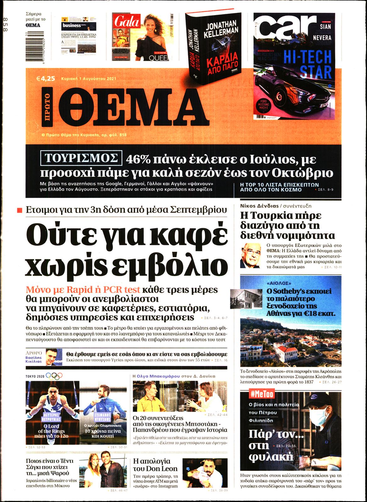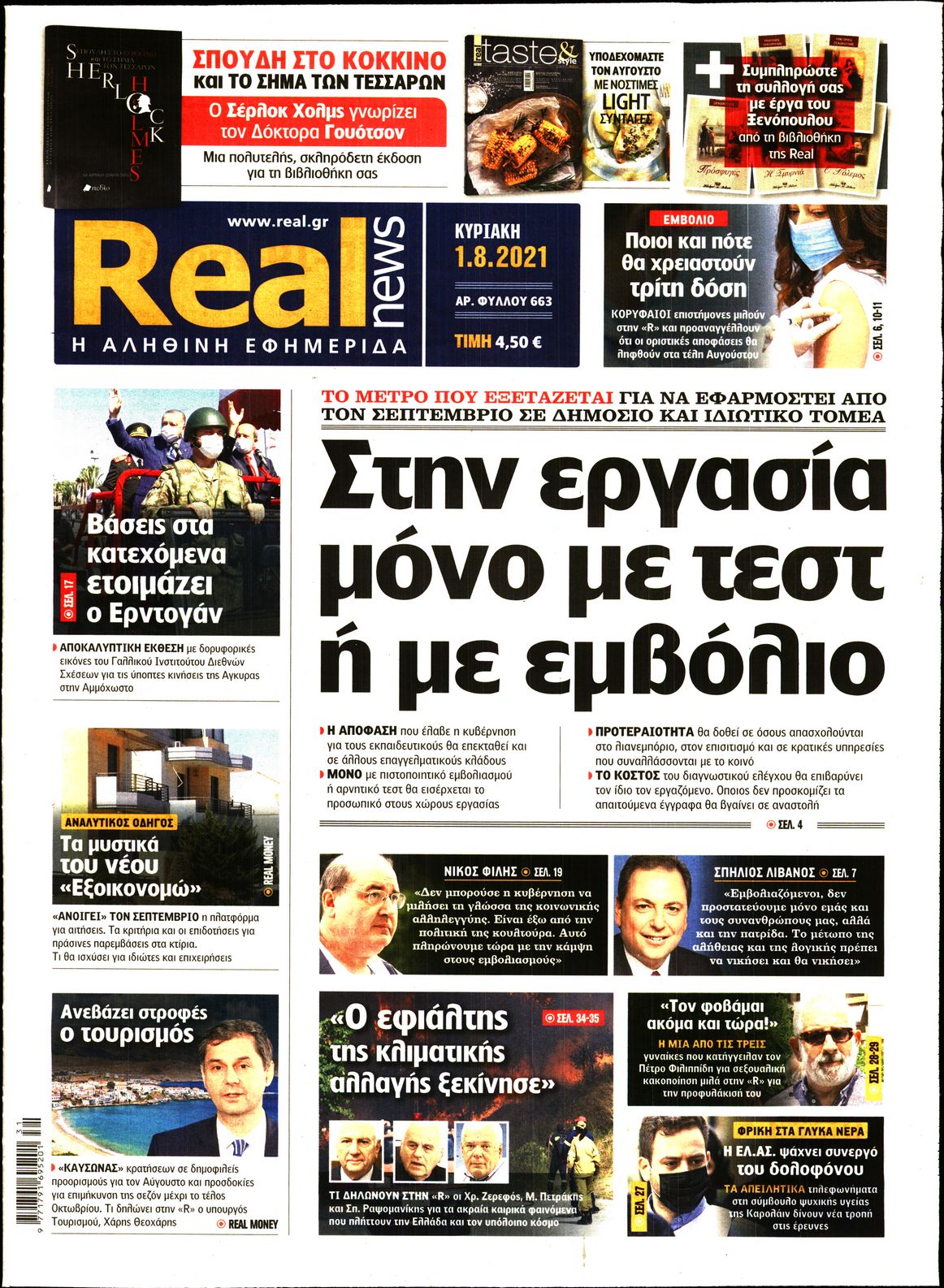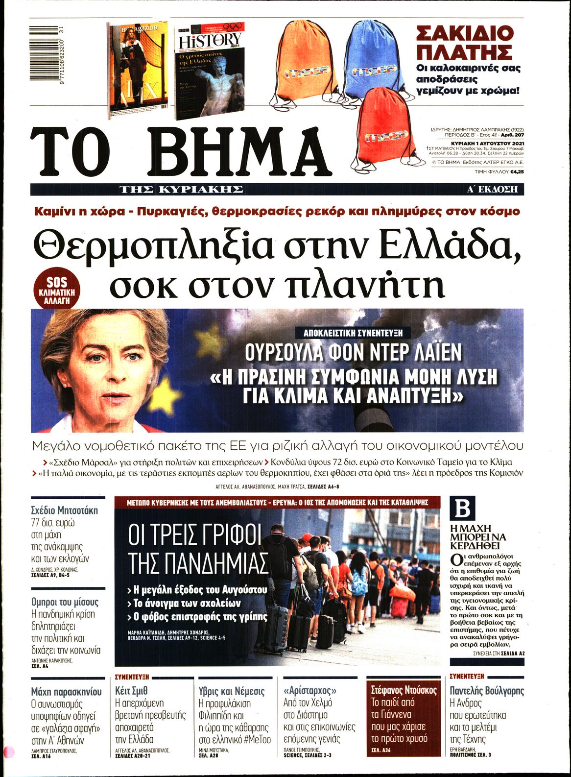H πορεία των εμβολιασμών και ο καύσωνας που φέρνει μεγάλες πυρκαγιές σε αρκετές ευρωπαϊκές χώρες είναι μεταξύ άλλων τα θέματα που κυριαρχούν στα πρωτοσέλιδα των κυριακάτικων εφημερίδων.