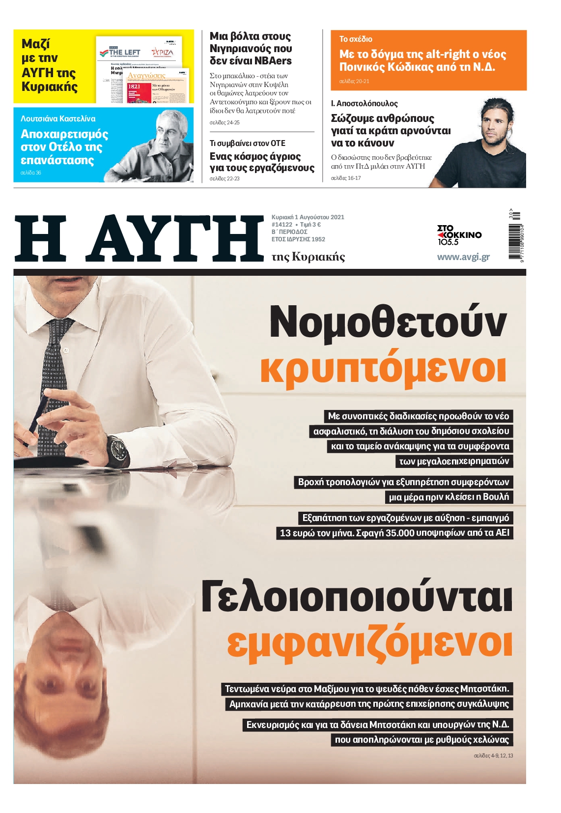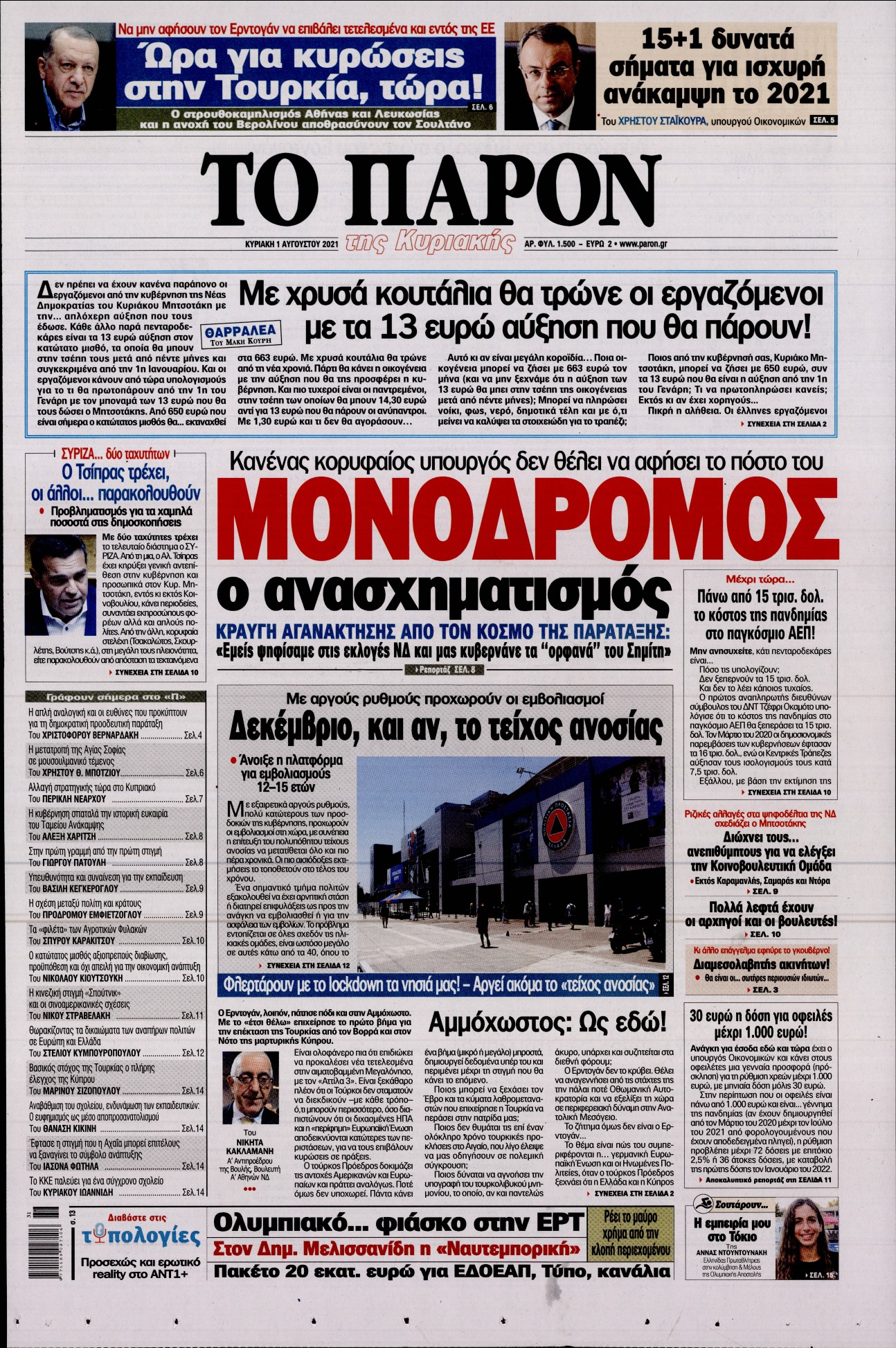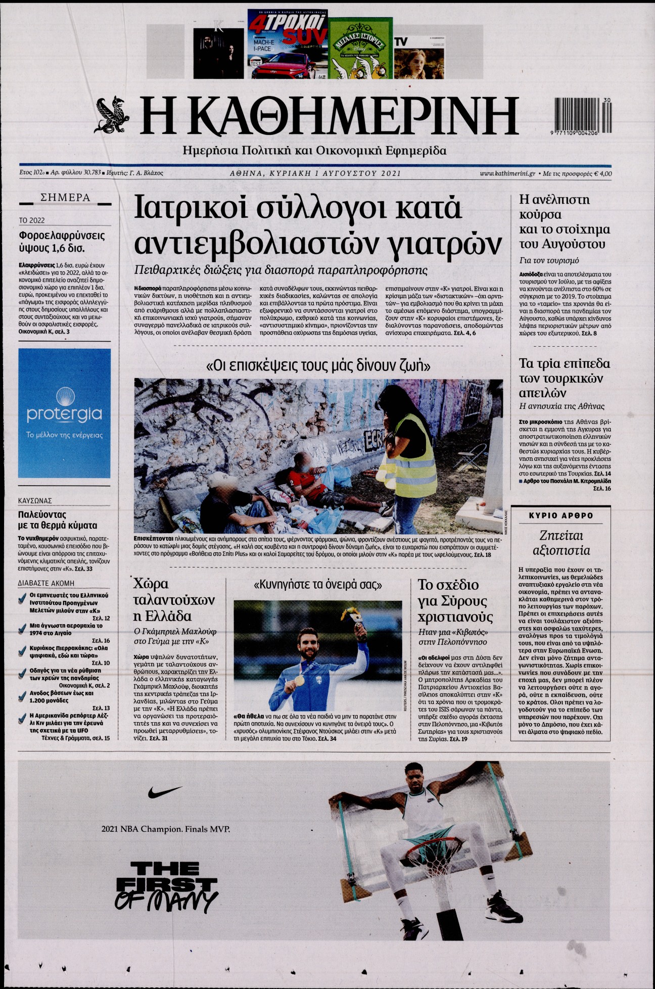 H πορεία των εμβολιασμών και ο καύσωνας που φέρνει μεγάλες πυρκαγιές σε αρκετές ευρωπαϊκές χώρες είναι μεταξύ άλλων τα θέματα που κυριαρχούν στα πρωτοσέλιδα των κυριακάτικων εφημερίδων.
