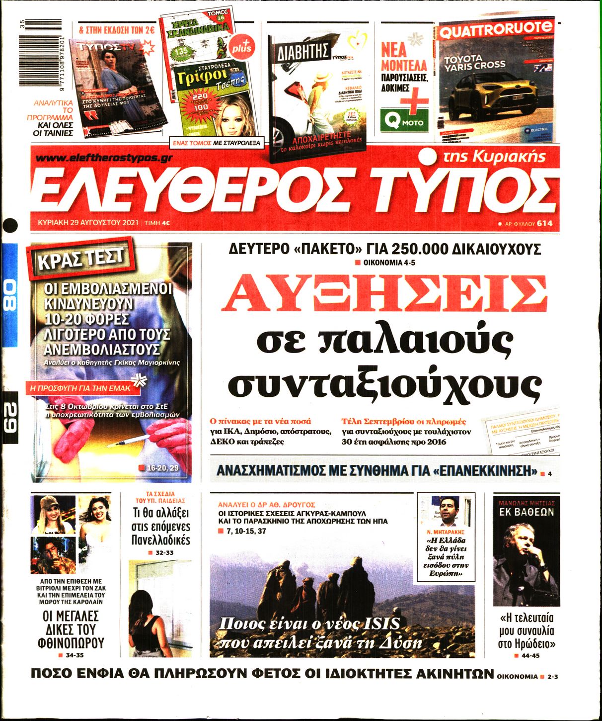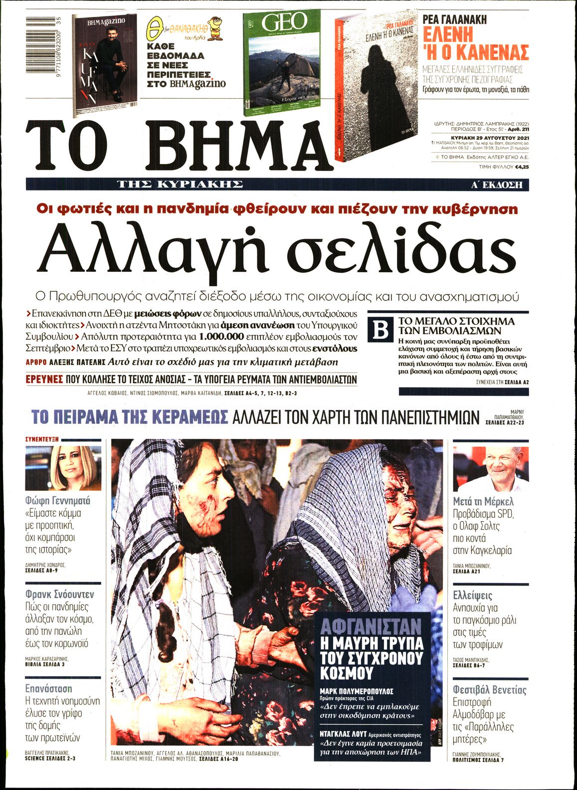 Τα σενάρια ανασχηματισμού, οι εξελίξεις στο Αφγανιστάν και η πορεία των εμβολιασμών κυριαρχούν στα πρωτοσέλιδα των κυριακάτικων εφημερίδων.