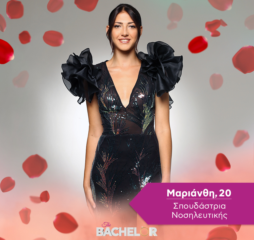 Έρχεται από τις Σέρρες ελπίζοντας να βρει στο πρόσωπο του Bachelor τον άντρα που θα την κάνει ευτυχισμένη και δεν θα την γεμίζει άγχος με τις ανασφάλειες του.