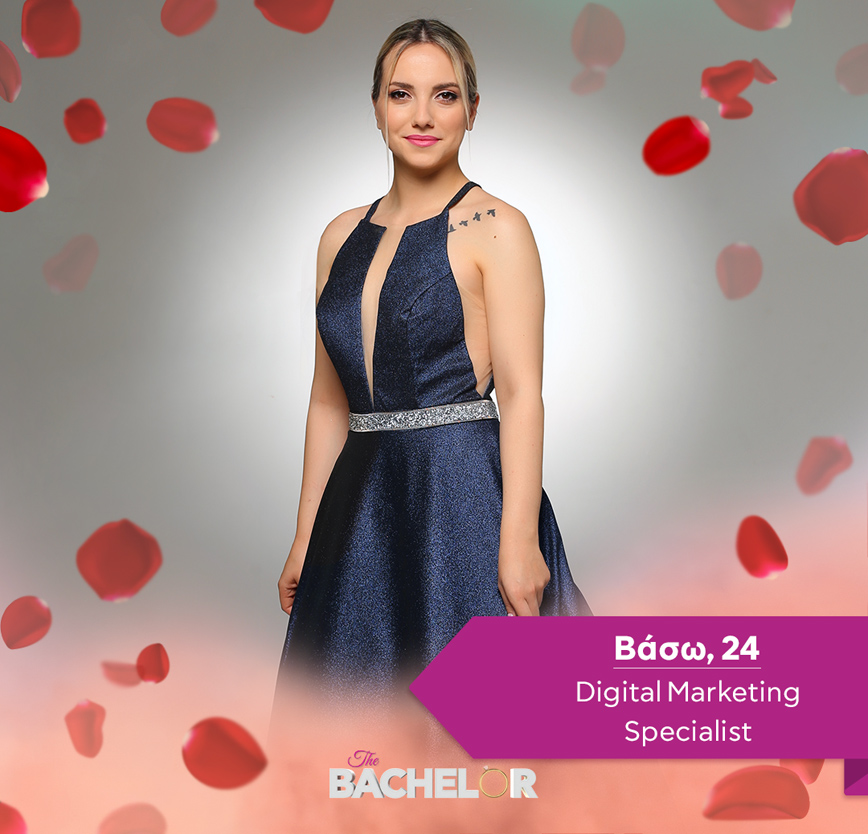 Η Βάσω γεννήθηκε και μεγάλωσε στην Ορεστιάδα. Της αρέσουν οι παραδοσιακοί άντρες που ξέρουν τι θέλουν και το διεκδικούν! Έρχεται στο The bachelor γιατί είναι κατά των dating apps. Σε μια γνωριμία, της αρέσει να ζει όλη την διαδικασία, την αμηχανία ενός ραντεβού, τα κοιτάγματα, το φλέρτ! Για αυτό επέλεξε να αναζητήσει την αγάπη στο The Bachelor! Να βιώσει την μαγεία των ραντεβού και των συναισθημάτων.