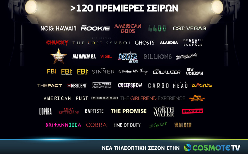 Πάνω από 120 νέες σειρές και νέοι κύκλοι δημοφιλών σειρών έρχονται σε Α’ τηλεοπτική προβολή, στο νέο πρόγραμμα της COSMOTE TV. Η τηλεοπτική σεζόν 2021-22 επιφυλάσσει συγκινήσεις, γέλιο, εκπλήξεις, έρωτες, μυστήριο, αγωνία, περιπέτεια και λαμπερά ονόματα, που αναμένεται να μονοπωλήσουν το ενδιαφέρον των συνδρομητών.