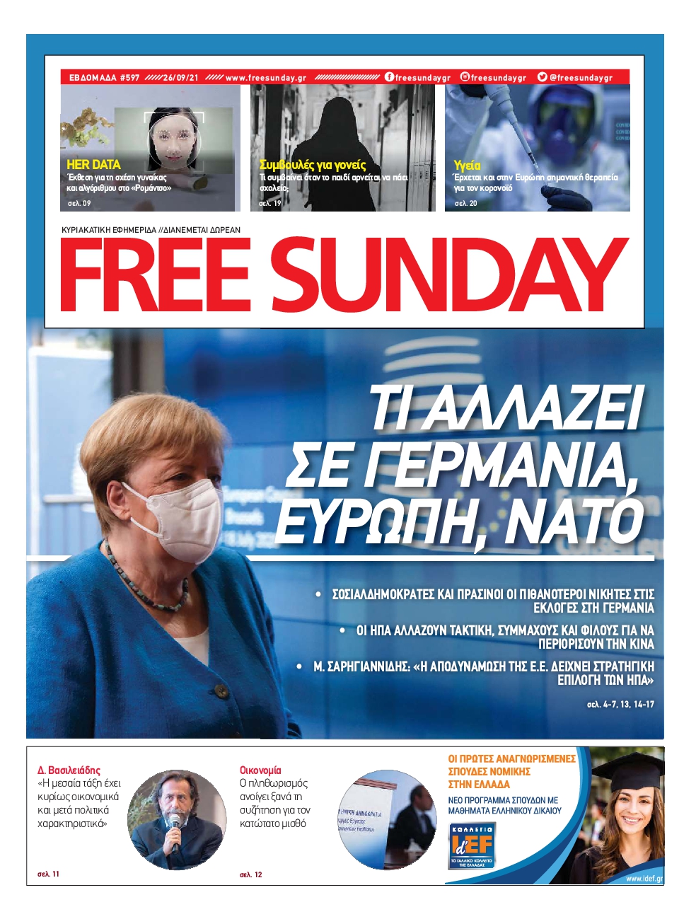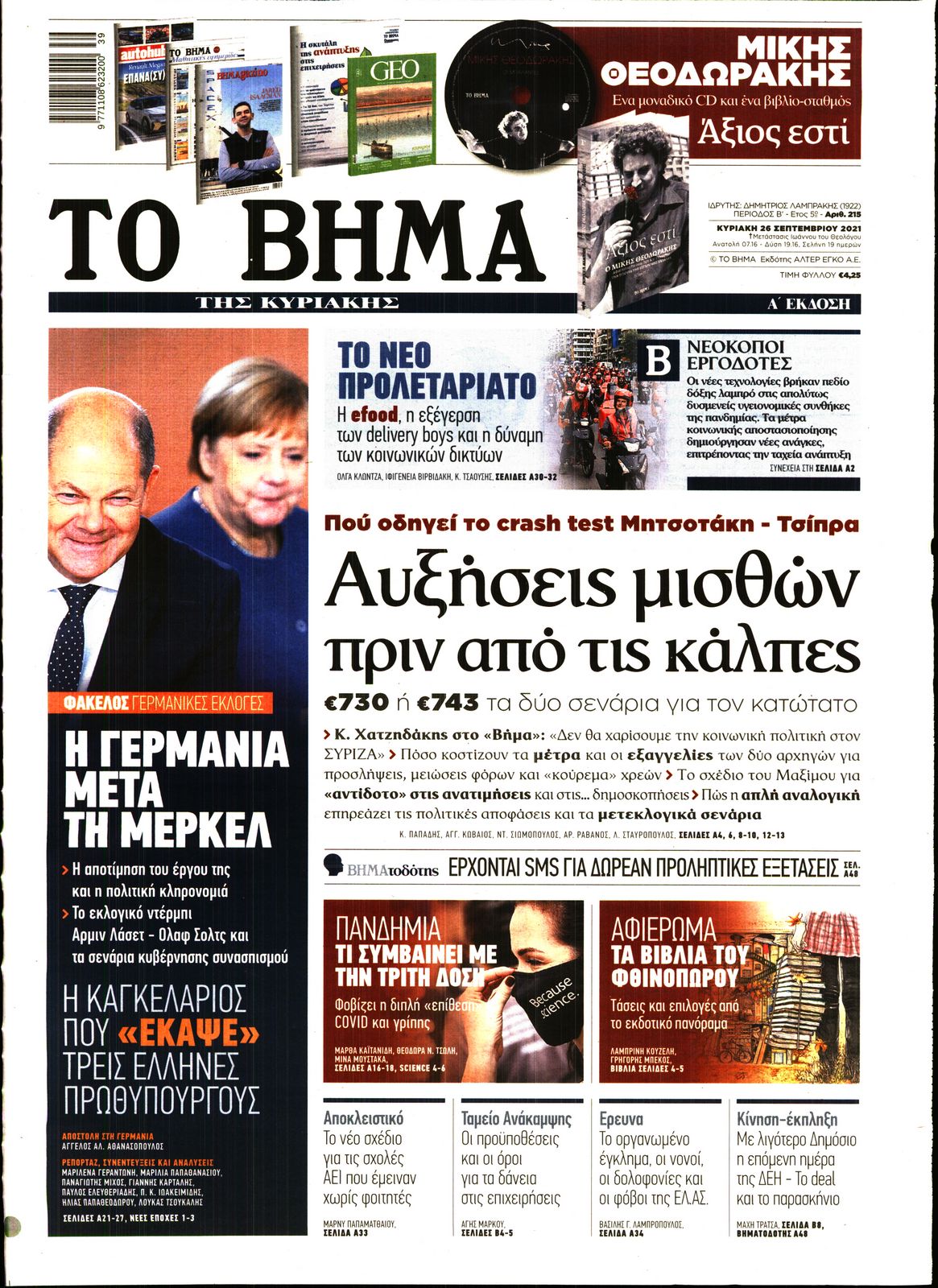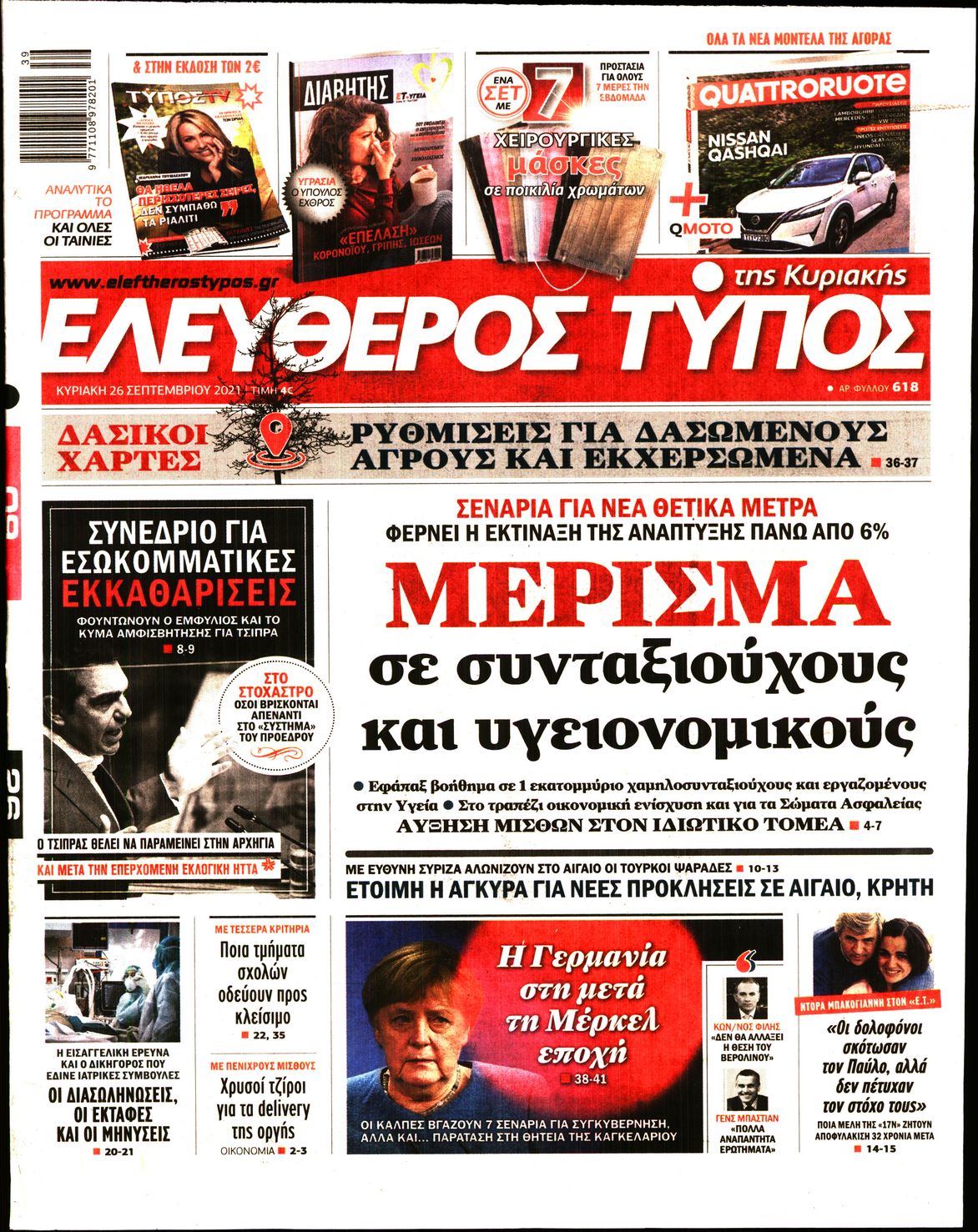 Η πορεία της πανδημίας με το άνοιγμα των σχολείων και την κινητικότητα των ανεμβολίαστων, αλλά και οι τελευταίες στιγμές της Άνγκελα Μέρκελ στην καγκελαρία της Γερμανίας ξεχωρίζουν μεταξύ άλλων στα πρωτοσέλιδα των κυριακάτικων εφημερίδων.