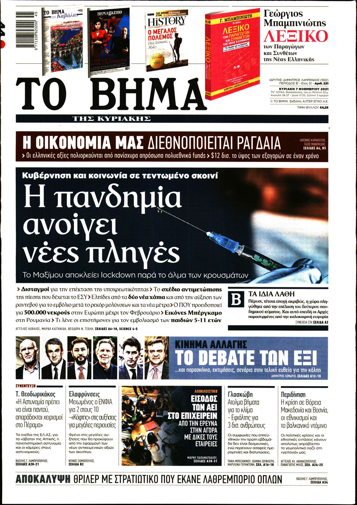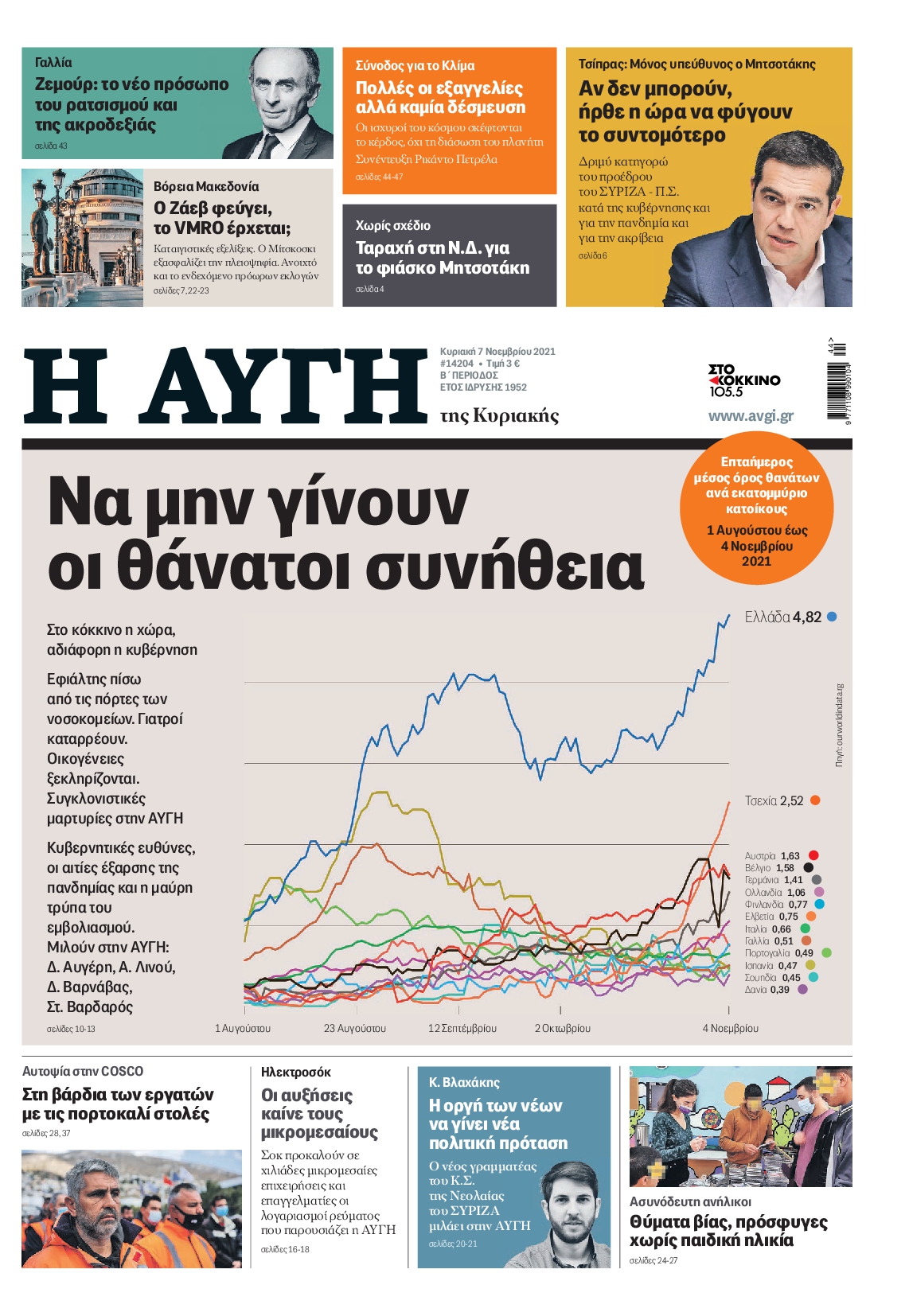 Η εξέλιξη της πανδημίας του κορονοϊού στην Ελλάδα και οι φόβοι για ένα νέο κύμα ξεχωρίζουν μεταξύ άλλων στα πρωτοσέλιδα των κυριακάτικων εφημερίδων.