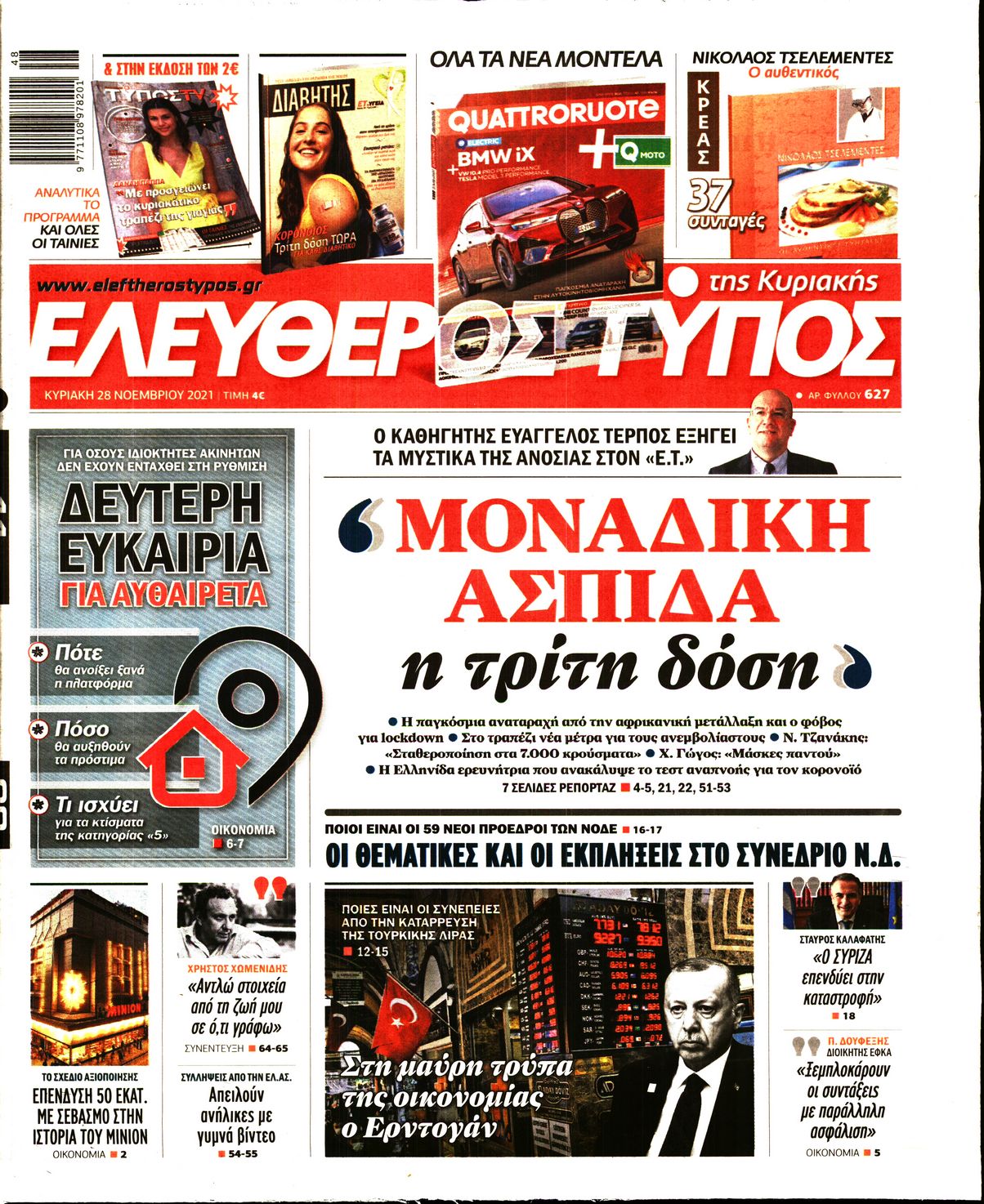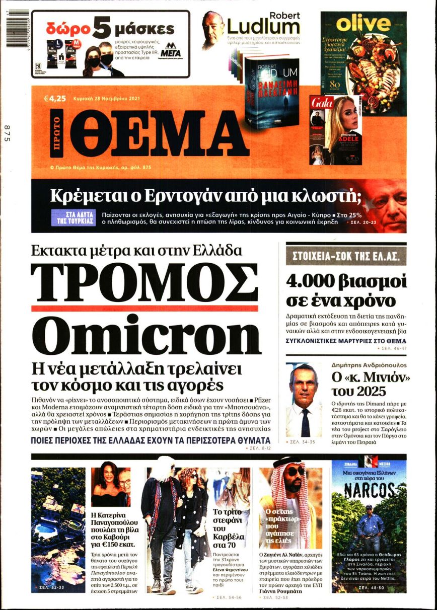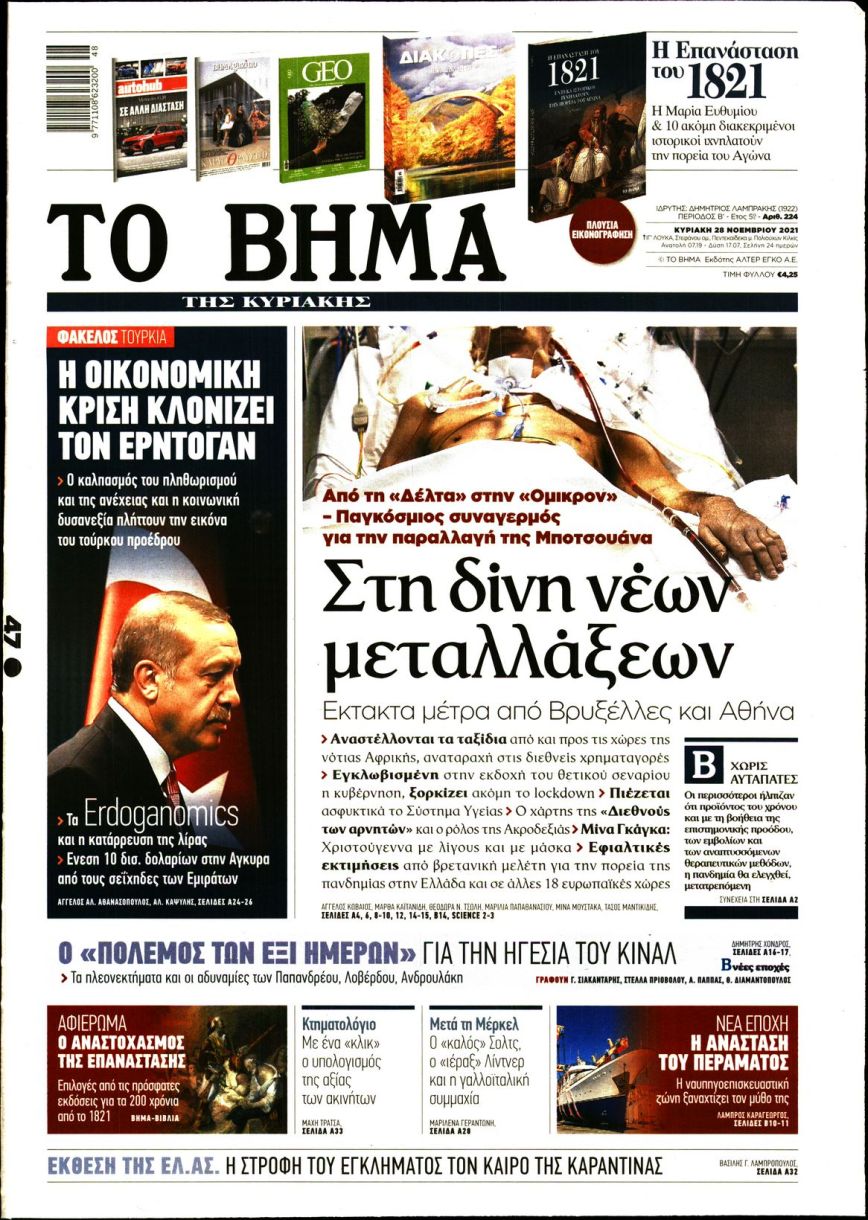 Η εμφάνιση της μετάλλαξης Όμικρον και η πορεία των εμβολιασμών ξεχωρίζουν μεταξύ άλλων στα πρωτοσέλιδα των κυριακάτικων εφημερίδων.