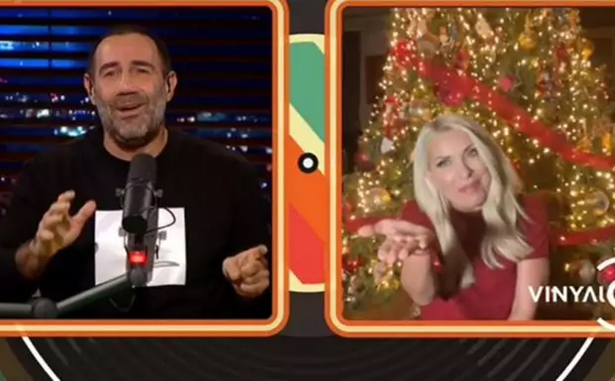 Και ενώ το «Βινύλιο» προχωρούσε, η Ελένη Μενεγάκη «παρενέβη» στην εκπομπή και κάπως έτσι επέστρεψε στην συχνότητα του Ant1 μετά από πολλά χρόνια. «Αλήθεια, γιατί είναι η πρώτη φορά που συναντιόμαστε στον τηλεοπτικό αέρα;» ρώτησε η Ελένη Μενεγάκη.