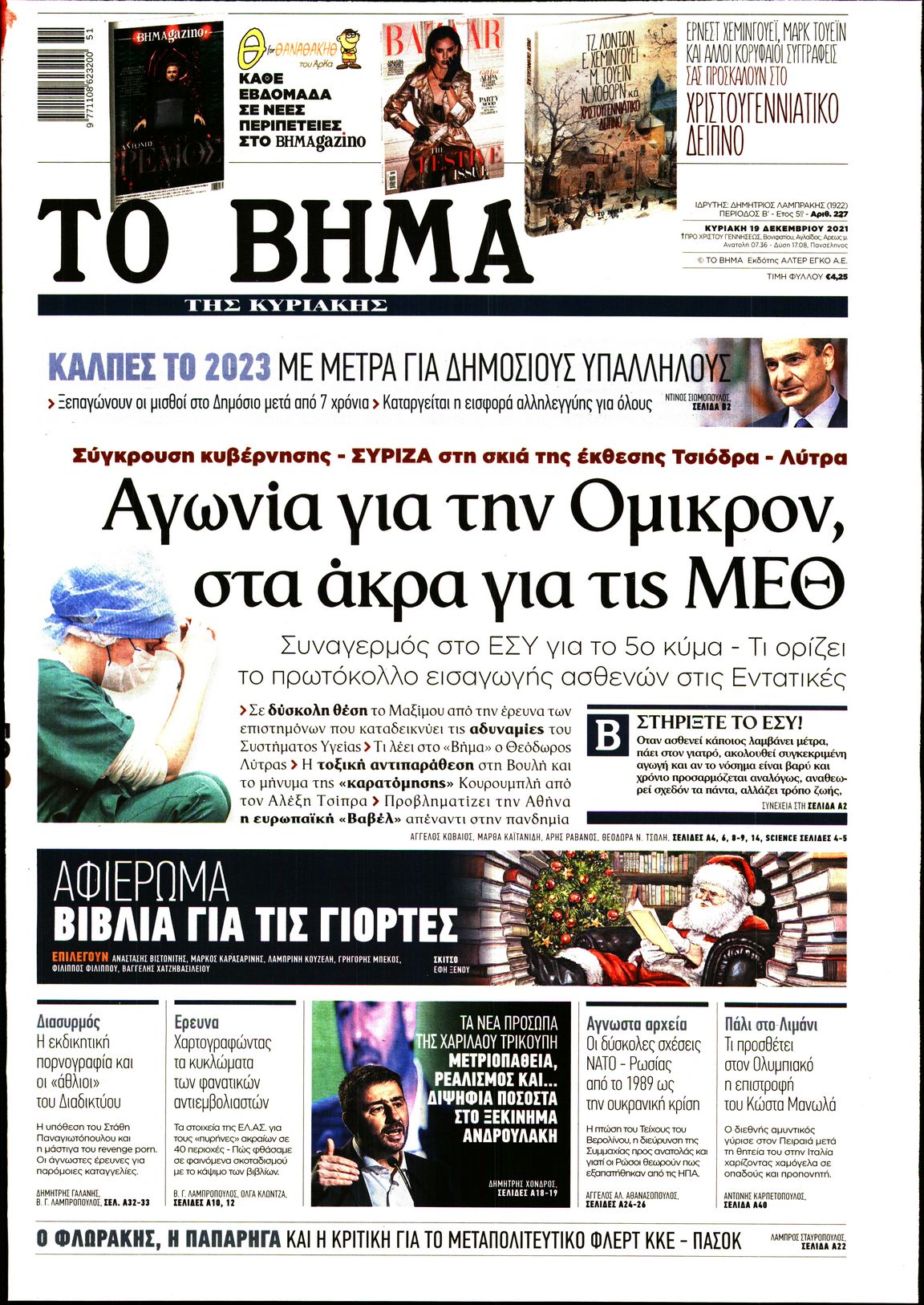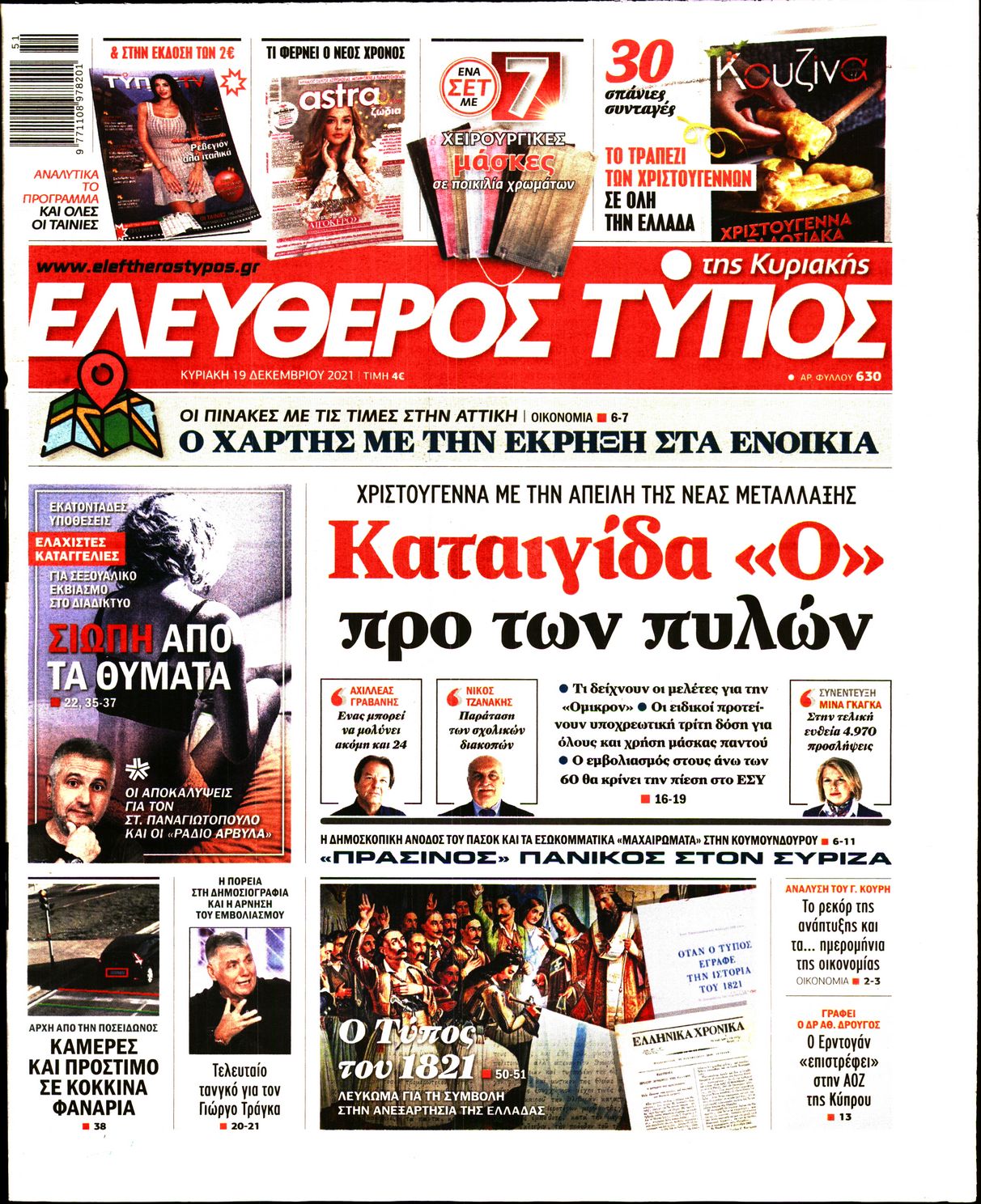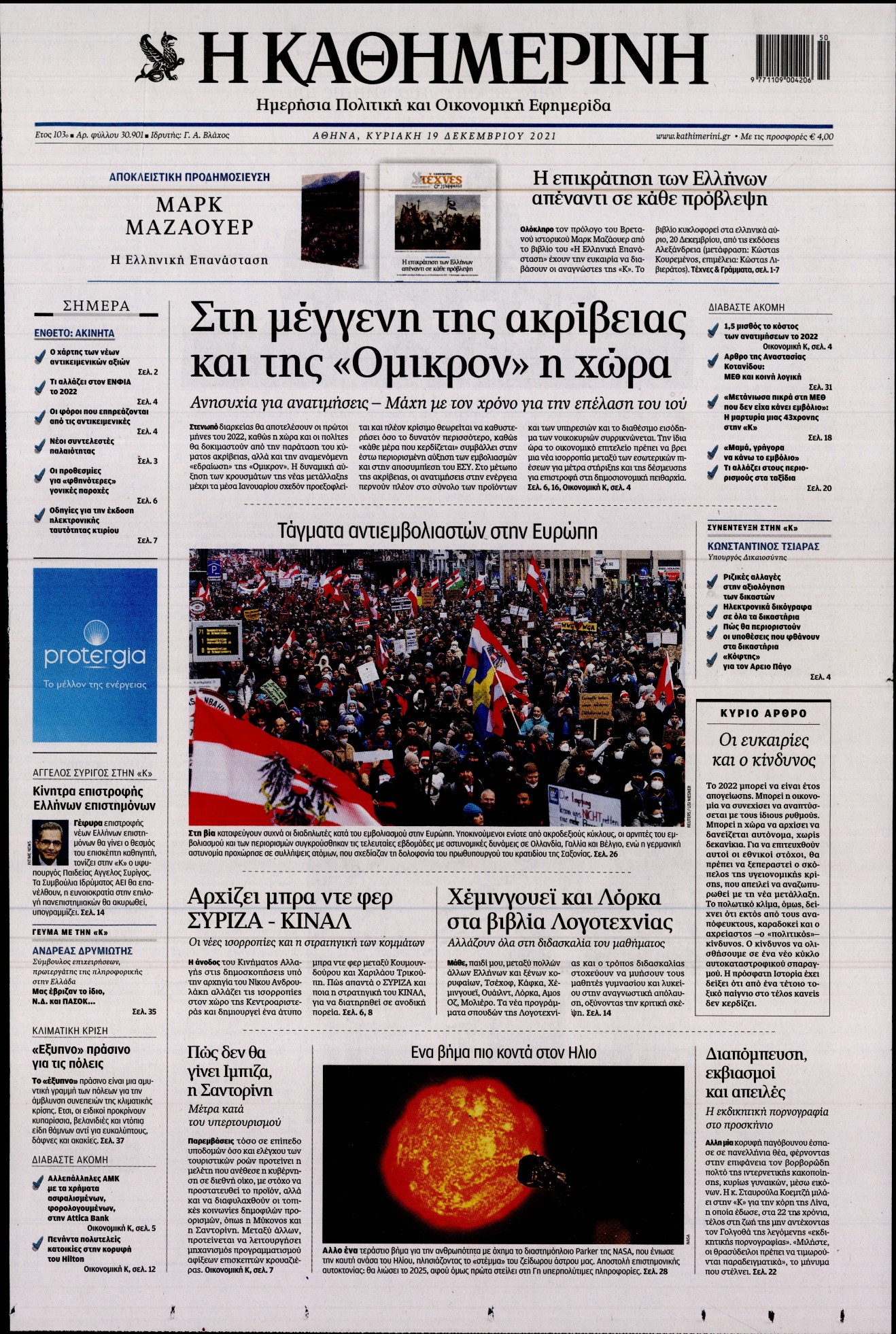 Η μετάλλαξη Όμικρον, η υπόθεση του Στάθη Παναγιωτόπουλου και τα δεδομένα στον χώρο της Κεντροαριστεράς ξεχωρίζουν μεταξύ άλλων στα πρωτοσέλιδα των κυριακάτικων εφημερίδων.