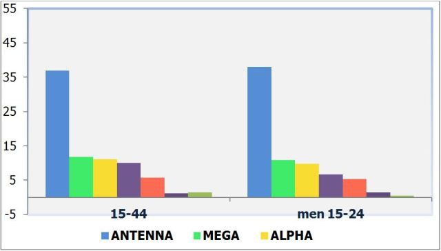 Όπως αποτυπώνεται και στον ακόλουθο πίνακα, η διαφορά από το δεύτερο κανάλι στους 15-44, άγγιξε τις 25 μονάδες.