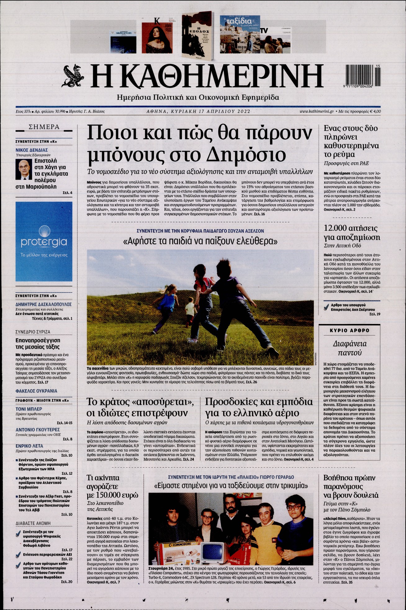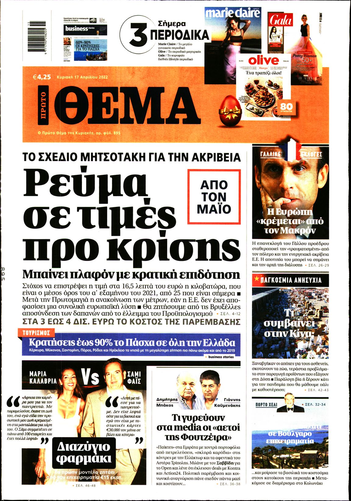 Τα δεδομένα στην αγορά της ενέργειας, τα μέτρα με τα οποία θα γιορταστεί το Πάσχα, οι εξελίξεις στη Γαλλία ενόψει του δεύτερου γύρου των προεδρικών εκλογών και η υπόθεση των νεκρών παιδιών στην Πάτρα ξεχωρίζουν στα πρωτοσέλιδα των κυριακάτικων εφημερίδων.