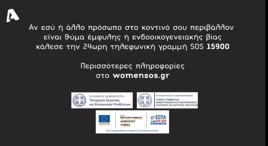 Μέσα από μια σειρά με βαθύ κοινωνικό αποτύπωμα, ο Alpha ενώνει τη φωνή του στον αγώνα για την καταπολέμηση της έμφυλης και ενδοοικογενειακής βίας μαζί με το Υπουργείο Εργασίας και Κοινωνικών Υποθέσεων και τη Γενική Γραμματεία Δημογραφικής και Οικογενειακής Πολιτικής και Ισότητας των Φύλων.