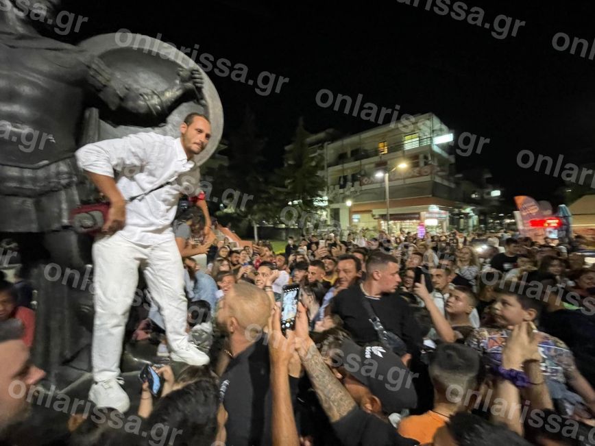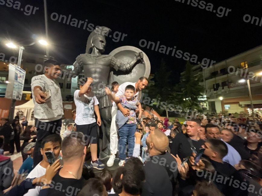 Το πλήθος φώναζε «Τσάκα Τσούκας» ρυθμικά, ενώ ο Γιώργος Κατσαούνης στο μικρόφωνο ξεκίνησε λέγοντας «καλώς ήρθατε στην πόλη των Μυρμιδόνων», σύμφωνα με το onlarissa.gr.