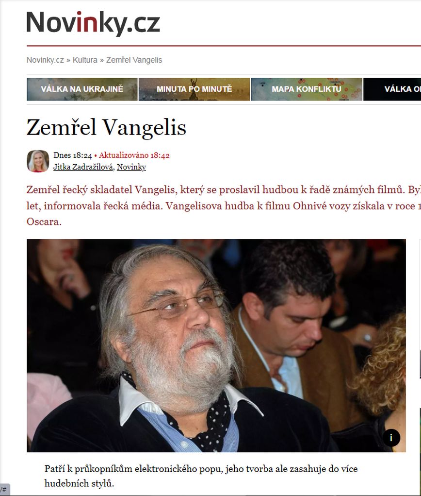 Και το Τσέχικο novinky έκανε αναφορά στην απώλεια του σπουδαίου μουσικοσυνθέτη.