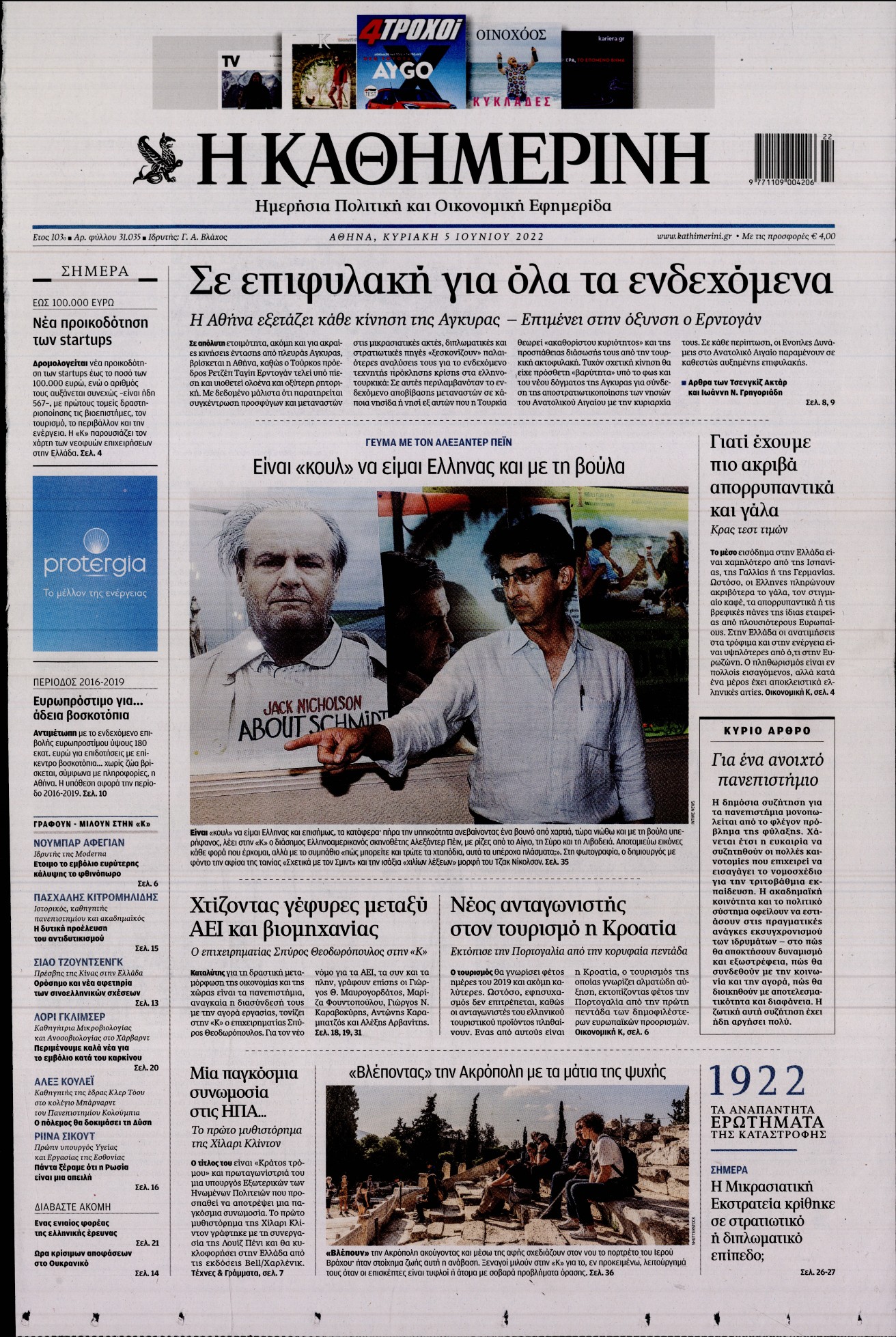Οι κινήσεις της Ελλάδας λόγω της τουρκικής προκλητικότητας και η ακρίβεια στα καύσιμα ξεχωρίζουν μεταξύ άλλων στα πρωτοσέλιδα των κυριακάτικων εφημερίδων.