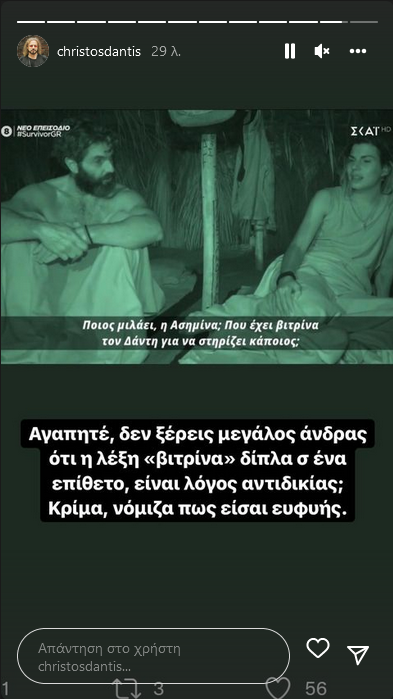 Ο Χρήστος Δάντης υπερασπίστηκε τον εαυτό του και την αγαπημένη του απαντώντας σε μία μία από τις ατάκες τους και μάλιστα έκανε λόγο ακόμα και για αντιδικία.