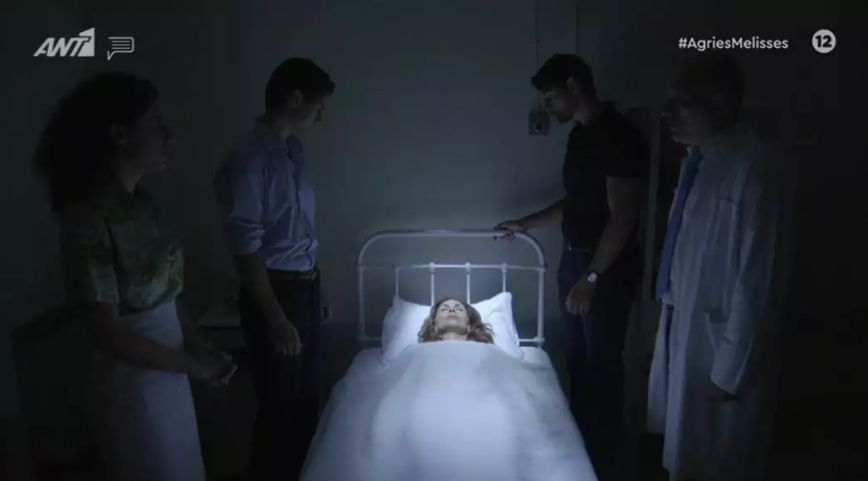 «Θέλω να δω τον άνδρα μου, κουράστηκα. Δεν αντέχω άλλο μακριά του» είπε η κουρασμένη Μυρσίνη και άφησε την τελευταία της πνοή ενώ στο επόμενο πλάνο, η Θεοδοσία την «πήρε» μαζί της.