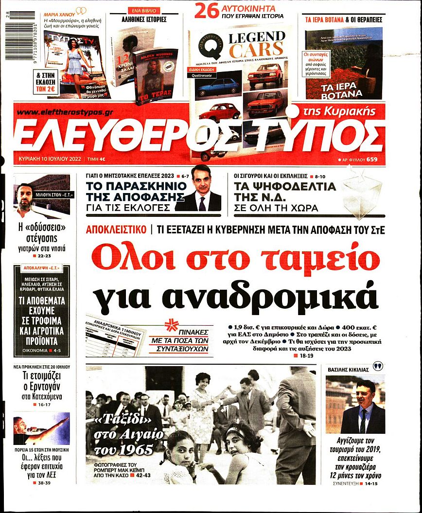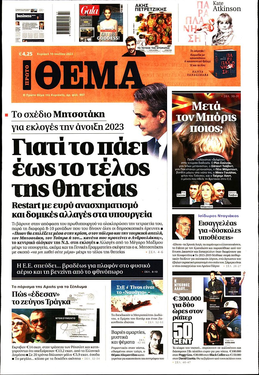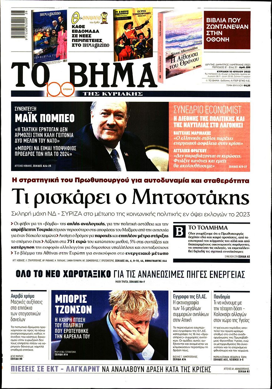 Το σχέδιο του πρωθυπουργού Κυριάκου Μητσοτάκη για εκλογές το 2023 και το πολιτικό μέλλον της Βρετανίας, μετά την παραίτηση του Μπόρις Τζόνσον, ξεχωρίζουν μεταξύ άλλων θεμάτων στα πρωτοσέλιδα των κυριακάτικων εφημερίδων.