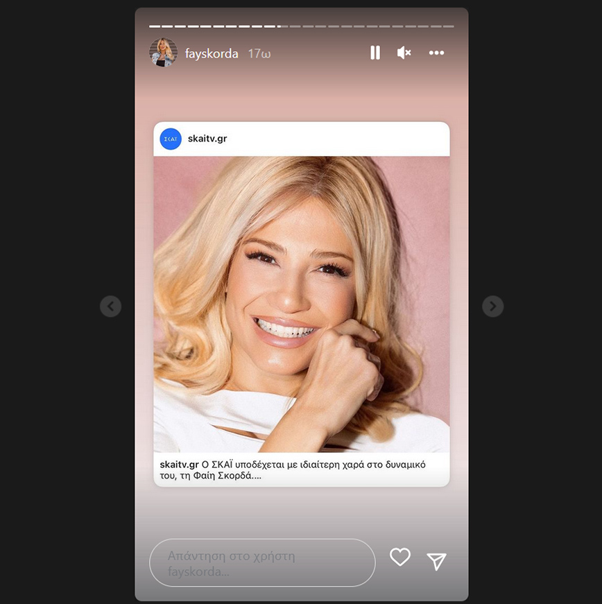 Η παρουσιάστρια μετά την ανακοίνωση του τηλεοπτικού σταθμού, έκανε repost την ανακοίνωση του ΣΚΑΙ, στον προσωπικό της λογαριασμό στο Instagram.