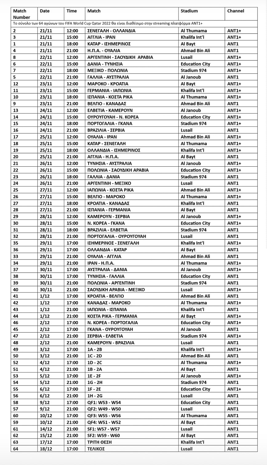 Η τελετή έναρξης και το Game 1 του Μουντιάλ, Κατάρ-Εκουαδόρ, θα μεταδοθούν ζωντανά από την ελεύθερη συχνότητα του Αντέννα TV στις 21 Νοεμβρίου.